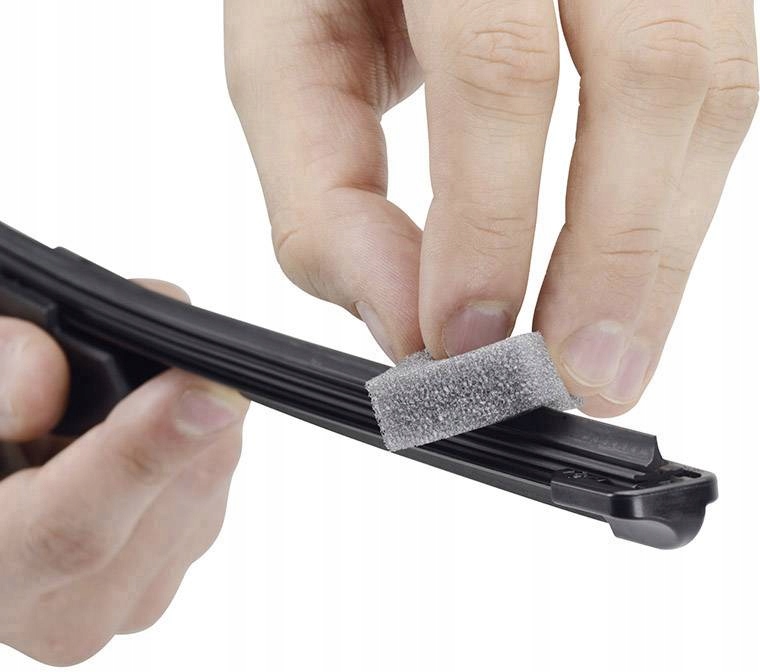 1) наклоните рычаг стеклоочистителя смоченной губкой (при сильном загрязнении сначала вытяните вставку щетки стеклоочистителя через канавку для чистки)