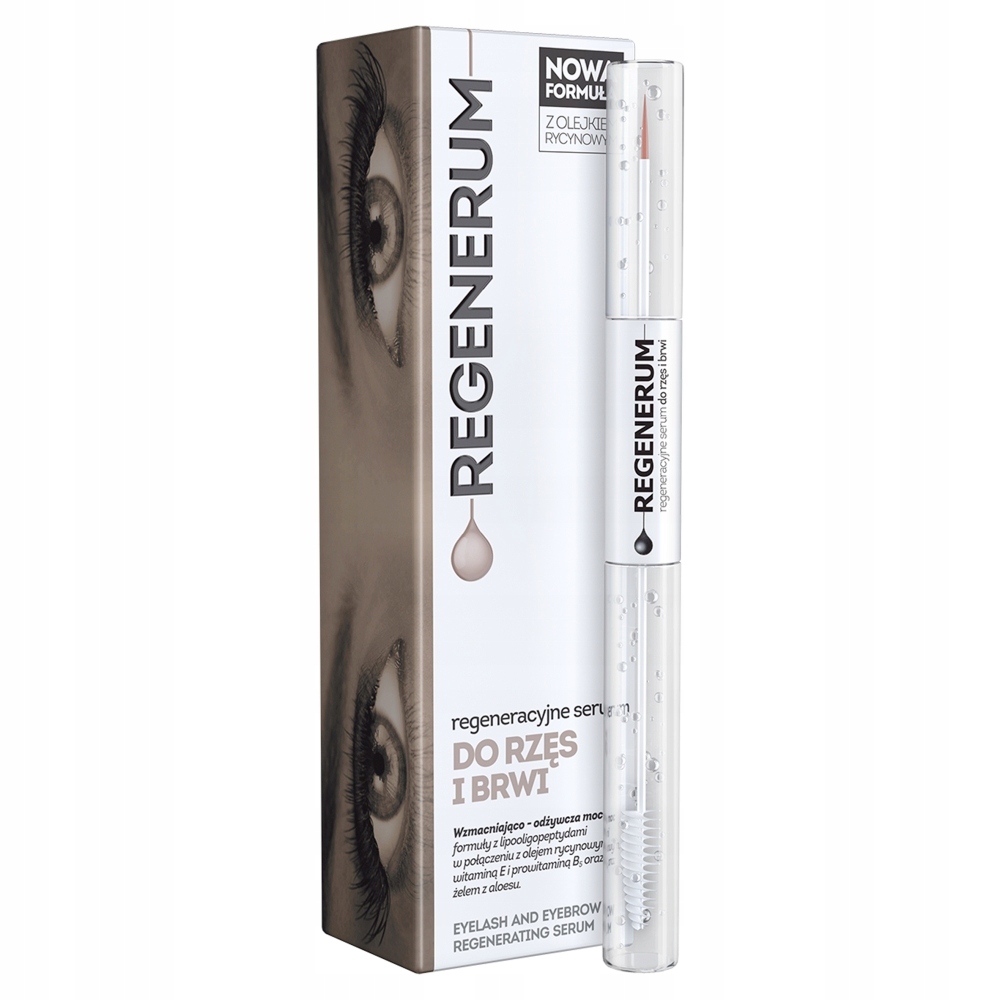 Регенерирующая сыворотка для ресниц и бровей Regenerum интенсивно питает и регенерирует волоски, делая их длиннее, толще и заметно укрепляя. Сыворотка состоит из двух специально разработанных формул: Сыворотка-подводка для нанесения по линии роста ресниц содержит питательные липоолигопептиды, которые, стимулируя луковицы, ускоряют рост ресниц, а также утолщают и утолщают структуру волосков. Дополнительно содержащийся в составе экстракт очанки оказывает смягчающее и успокаивающее действие на нежную и чувствительную кожу век. (4мл) Сыворотка с кисточкой для нанесения на всю длину ресниц и бровей содержит гель алоэ, витамин Е и касторовое масло, которые проникают в волокна волос, увлажняют их, делают эластичными и глубоко укрепляют. Матрицин с содержащимся в составе провитамином В5 эффектно удлиняет ресницы и утолщает брови, эффективно ограничивая их выпадение. Кроме того, сыворотка естественным образом затемняет их. (7 мл)