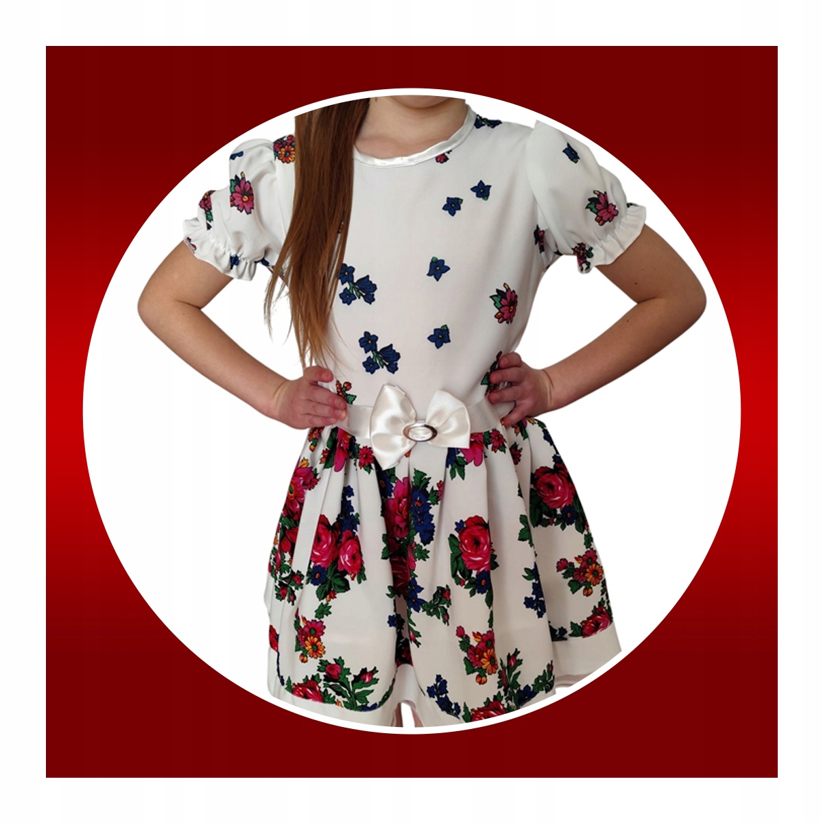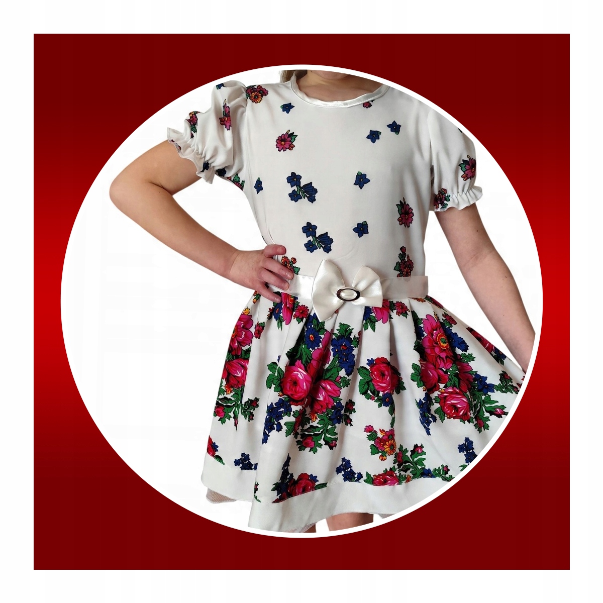 Региональное платье с высокой точки зрения для народной девушки с цветами 128/134 Белый h1>