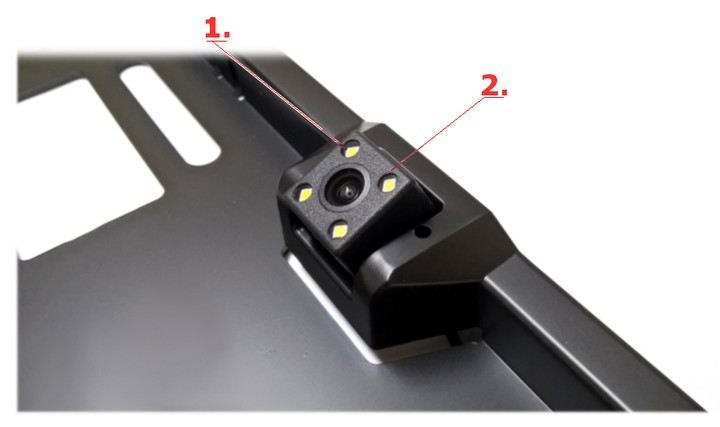 Камера заднего вида, встроенная в рамку номерного знака AV-кабель типа RCA «тюльпан», длина 6 м Кабель питания, длина 101 см