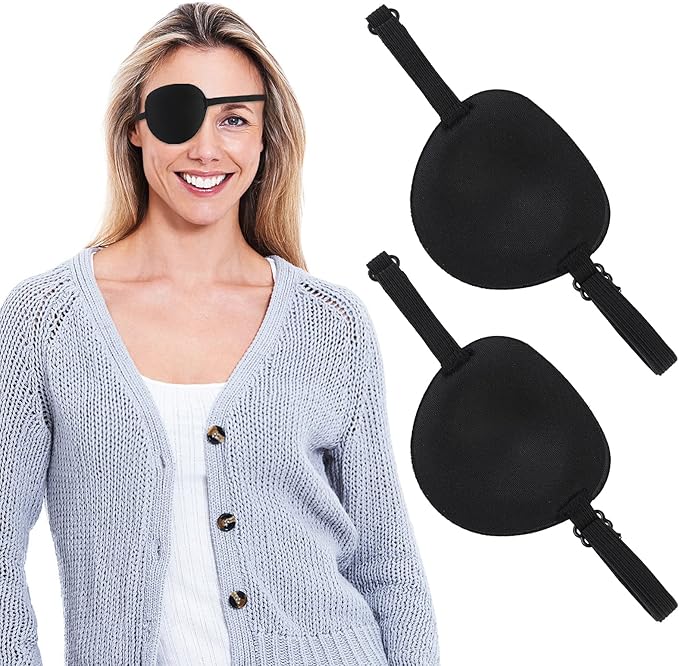 Регулируемая повязка на глаз для взрослых, детей, регулируемая медицинская повязка на глаз, для левого или правого глаза, ленивая амблиопия, восстановление после операции и косплей (черный)