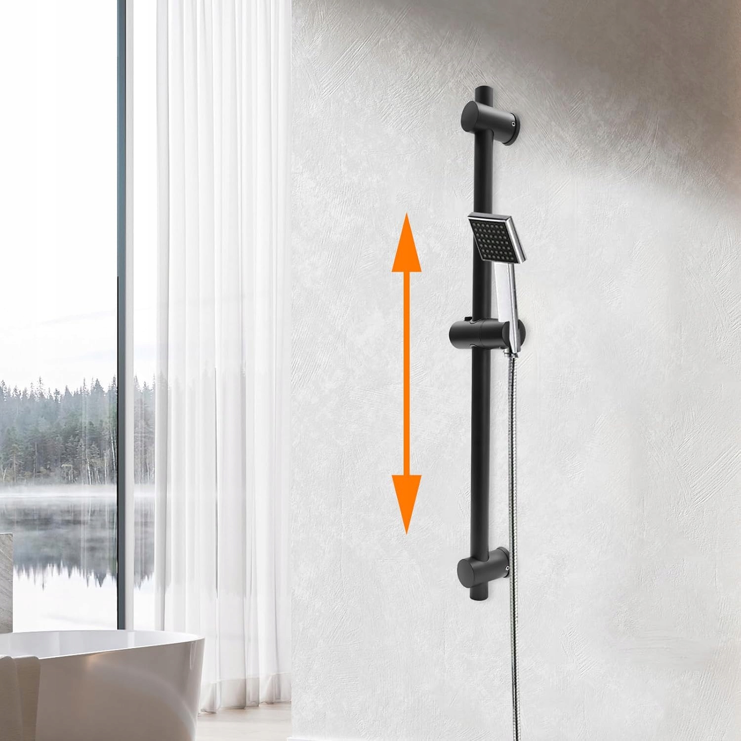 ✅ 【Многофункциональный держатель для душа】 раздвижной кронштейн может быть свободно перемещен и заблокирован, чтобы удовлетворить потребности каждого пользователя разного высоты и уголка душа. Благодаря простой черной отделке, у него есть современный стиль, который дополнит декор каждой ванной комнаты.