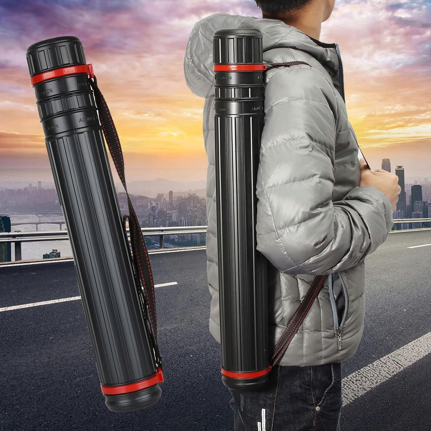 , оснащенное прочным, регулируемым плечевым ремнем b>, наша трубка для рисования облегчает транспортировку вашей работы. Пояс достигает поднимая до 5 кг , и его регулировка позволяет настроить трубку до вашего роста , гарантируя комфорт при ношении.