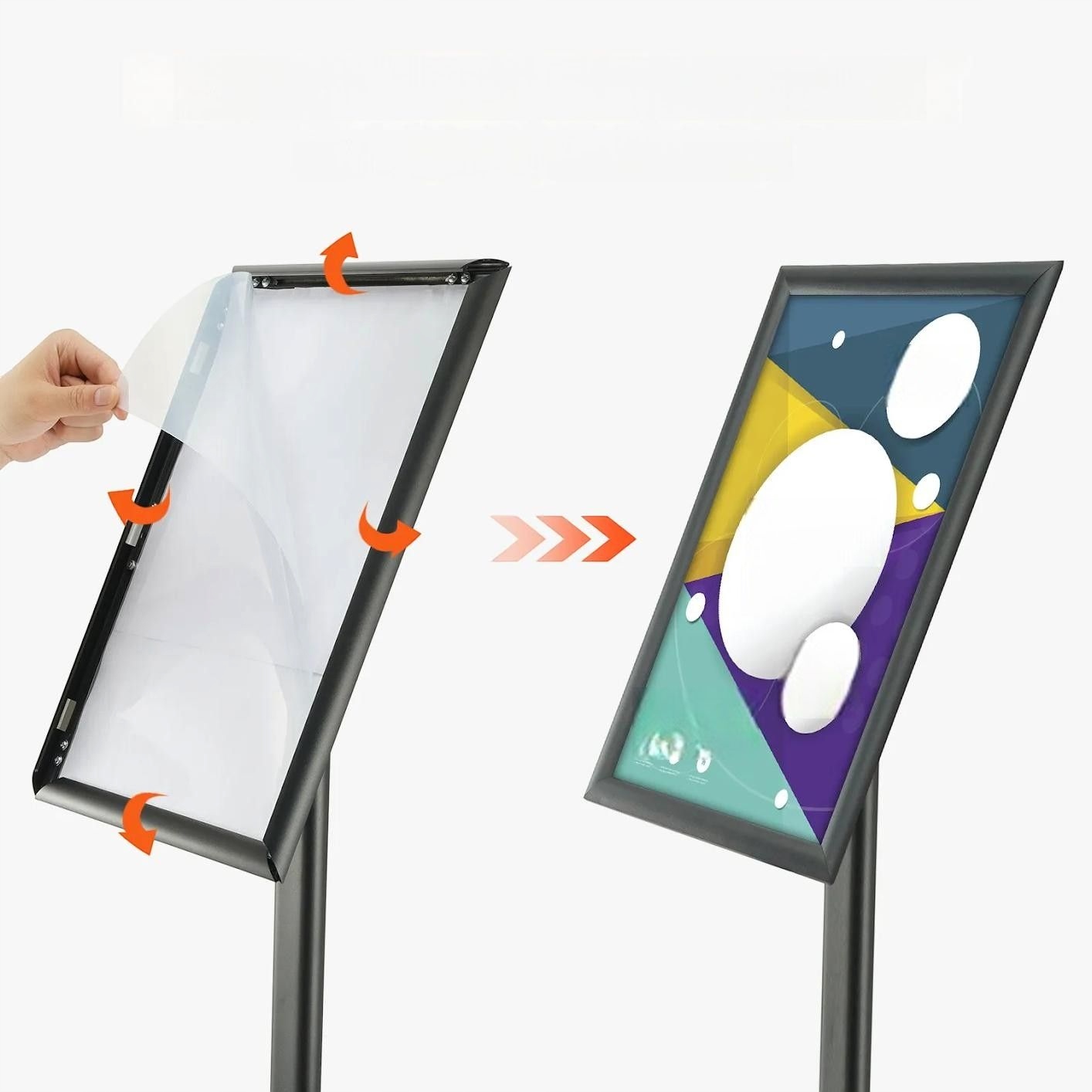 ✅ Легкая замена плакатов: Конструкция с передним открыванием позволяет быстро заменять плакаты без инструментов.