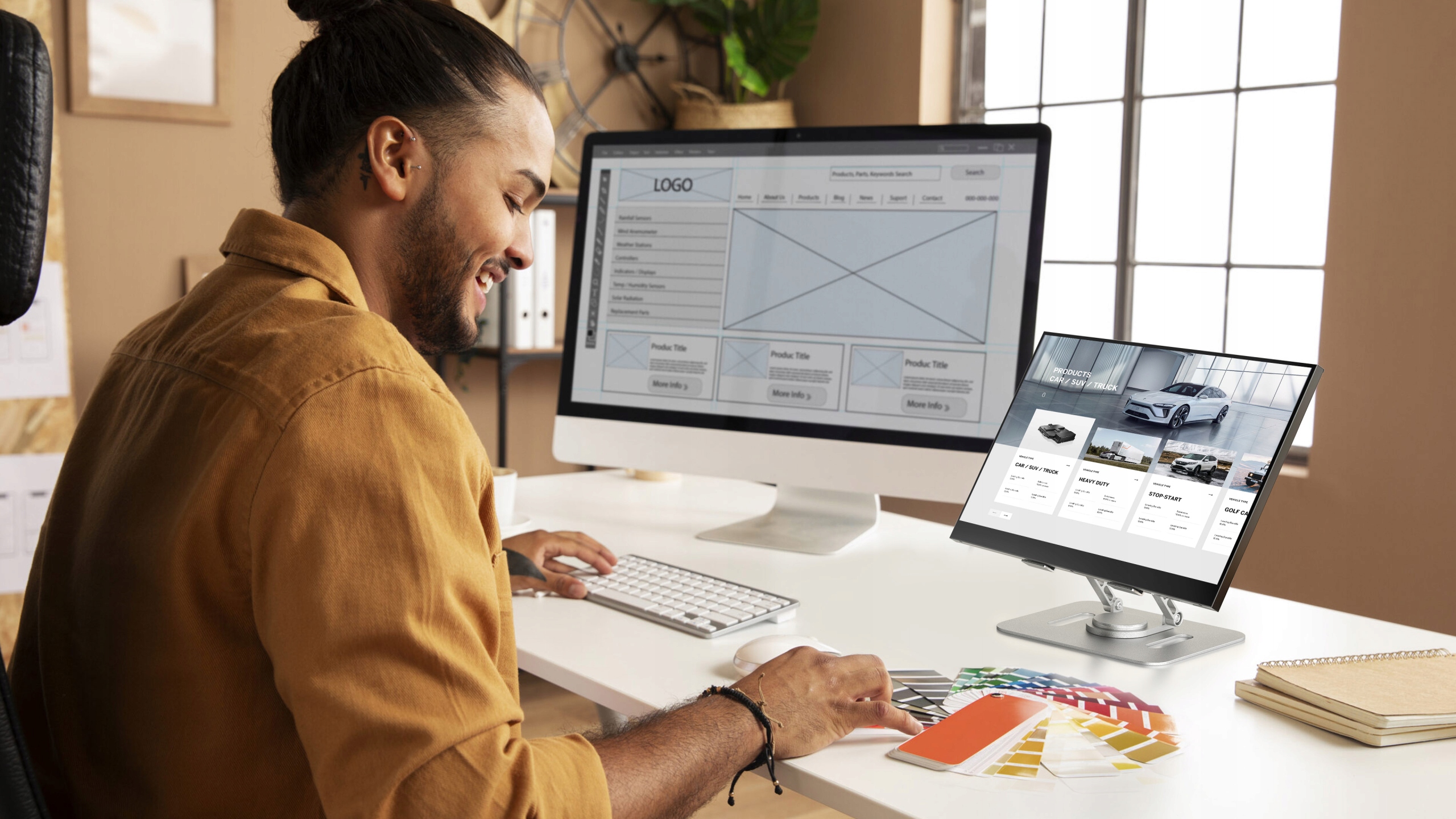 При использовании нескольких экранов для выполнения нескольких задач одновременно, если оба экрана не находятся на одной горизонтальной линии, это не только влияет на визуальный эффект, но также вызывает утомление глаз и шея. Использование крепления для монитора для размещения внешнего дисплея и монитора в одной горизонтальной плоскости может улучшить совместную работу при многозадачности в нескольких окнах и повысить производительность.