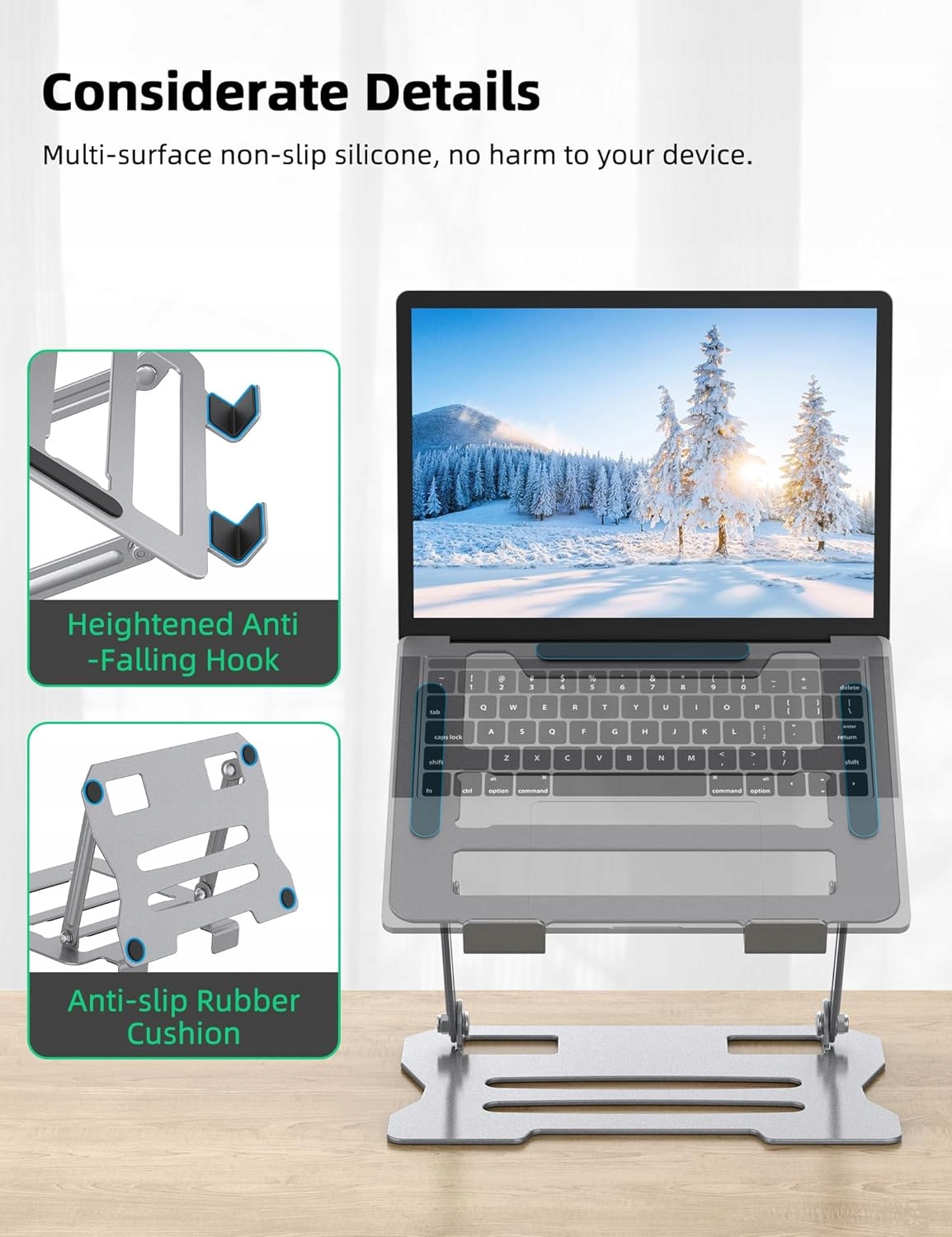 - ✅【Создан для устойчивости и защиты】Изготовленный из высококачественной углеродистой стали, этот держатель для ноутбука выдерживает вес до 10 кг (22 фунта) без риска соскальзывания. два крючка оснащены противоскользящими силиконовыми накладками, которые обеспечивают устойчивость ноутбука при наборе текста, не опасаясь соскальзывания ноутбука. 4 нескользящие силиконовые накладки (внизу) предотвращают скольжение подставки, одновременно повышая общую устойчивость.