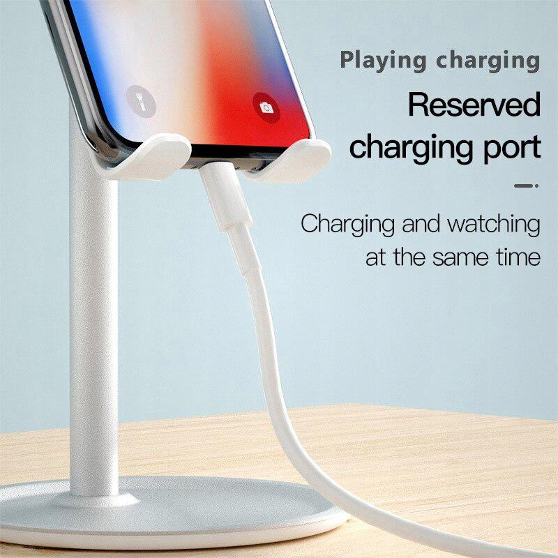 Практическая подставка с эстетичным дизайном, совместимая со всеми смартфонами и планшетами с диагональю до 11 дюймов, позволяет подключать зарядное устройство