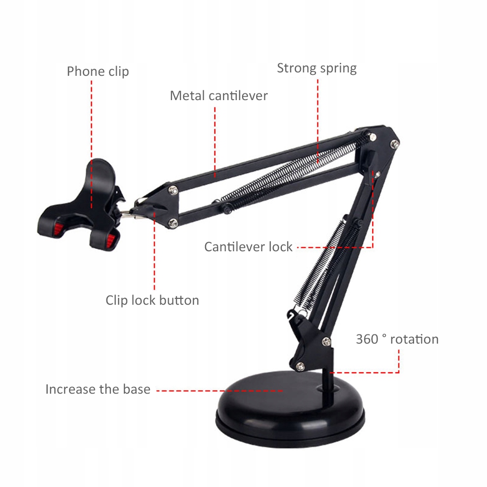 Изделие представляет собой плечевую подставку, предназначенную для мобильного телефона и микрофона. Он оснащен сверхсильной пружиной, поэтому выдерживает гораздо больший вес. для радиостудий, студий звукозаписи, телесцен и станций и т. д.
