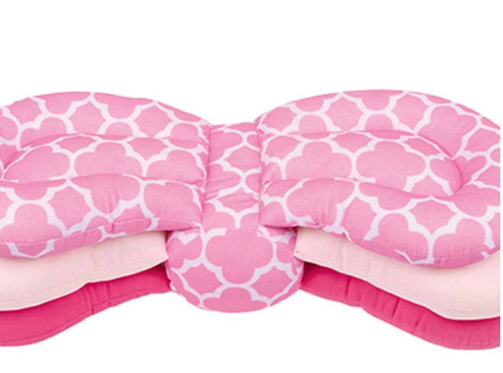 Подушку также легко хранить и транспортировать, с обеих сторон у нее красивые, эстетичные ленты, которые при завязывании делают подушку маленькой и компактной, а завязанные ленты образуют ручку.