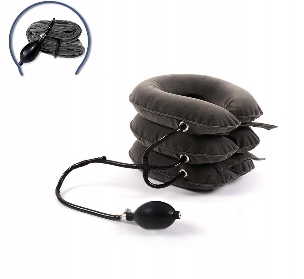 В надутом состоянии передняя часть тягового устройства находится ниже задней. Этот угол обеспечивает лучшее сцепление шейного отдела позвоночника, улучшает кровообращение и облегчает боль в шее и плечах.