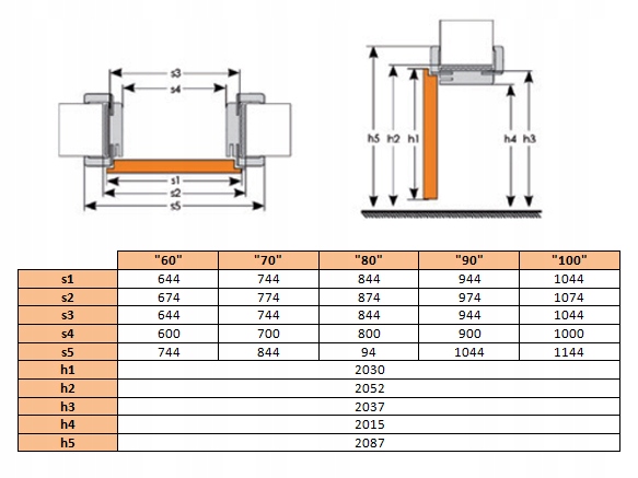 s3 - внешняя ширина дверной коробки