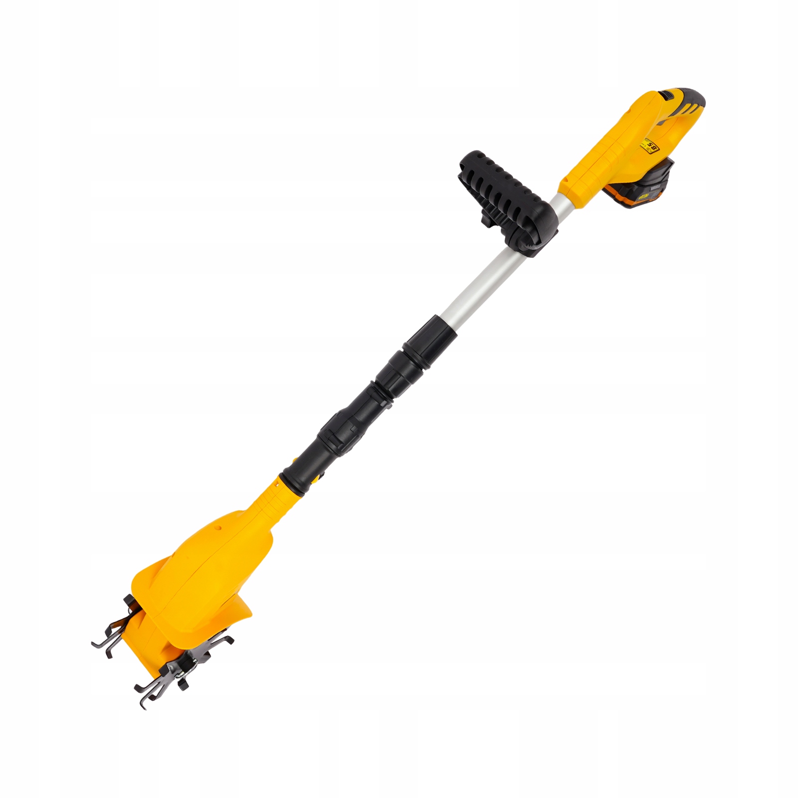 Длительный срок службы: Изделие оснащено литий-ионным аккумулятором емкостью 2,0 Ач, срок службы без нагрузки до 40 минут после полной зарядки (около 1–3 часов), что позволяет избежать частой зарядки при вспашке.