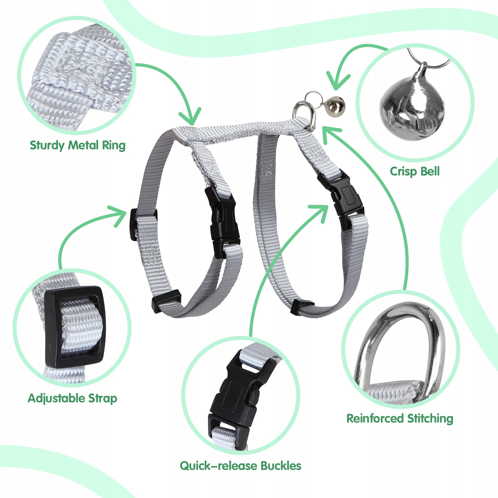 На шлейке имеется колокольчик, который издает звук при ходьбе кошки, что снижает риск потерять его.