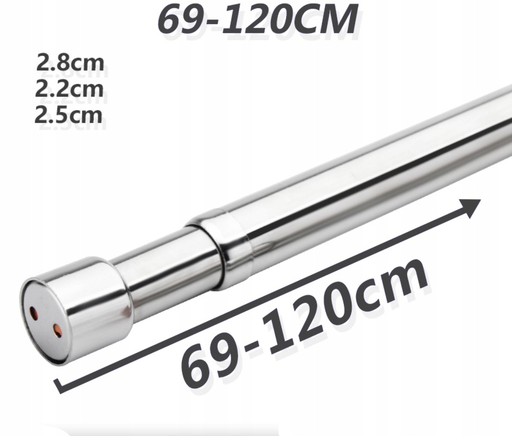 -Штанга регулируется в диапазоне от 69 до 120 см и подходит для большинства шкафов.