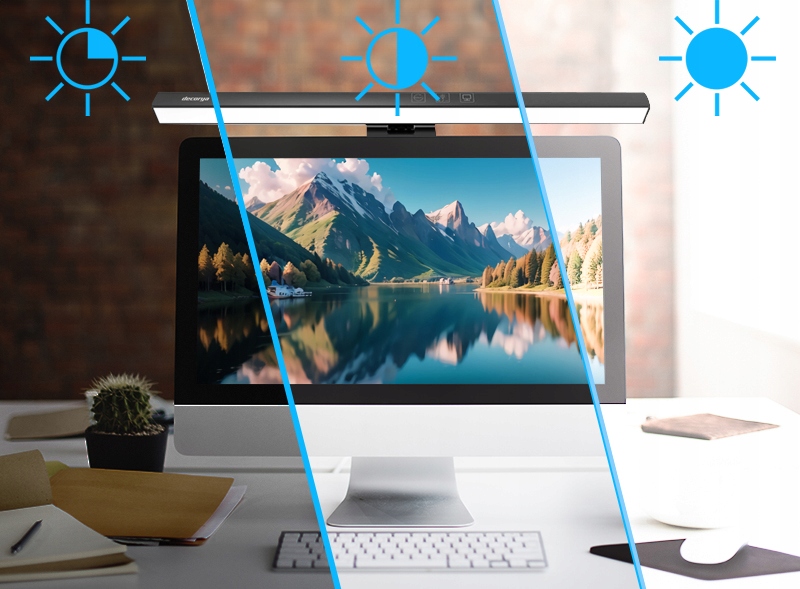 ⭐ Decorya MTOffice — удобная лампа для монитора, которую можно установить на любой край монитора. Таким образом, вы сэкономите ценное место на столе, убрав классическую настольную лампу, и освободите место для других устройств и аксессуаров.