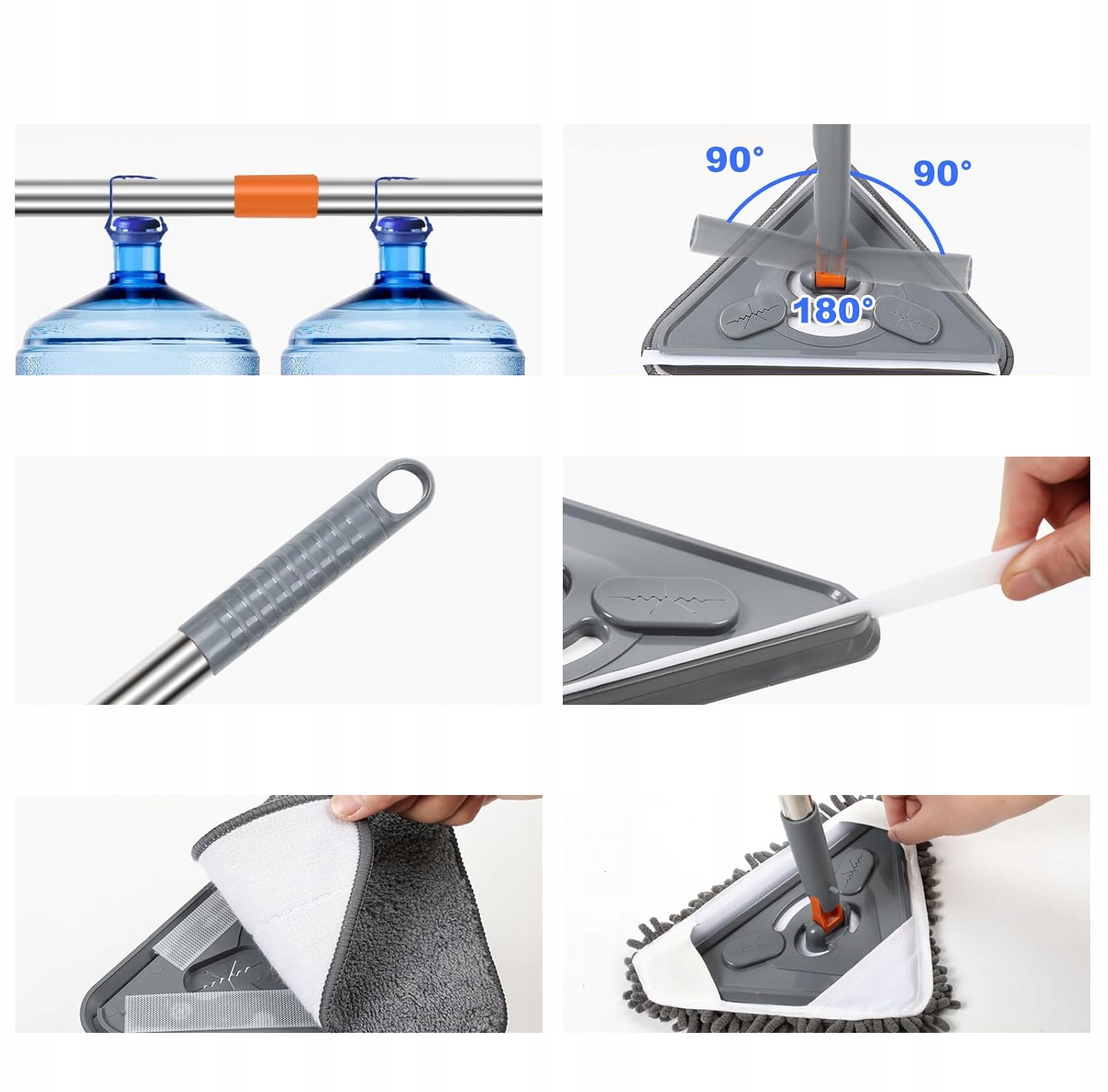 - Насадка для чистящей швабры вращается на 360°, а треугольная насадка позволяет лучше очищать каждый угол, включая глухие углы, такие как плинтусы, низ дивана и углы потолка.