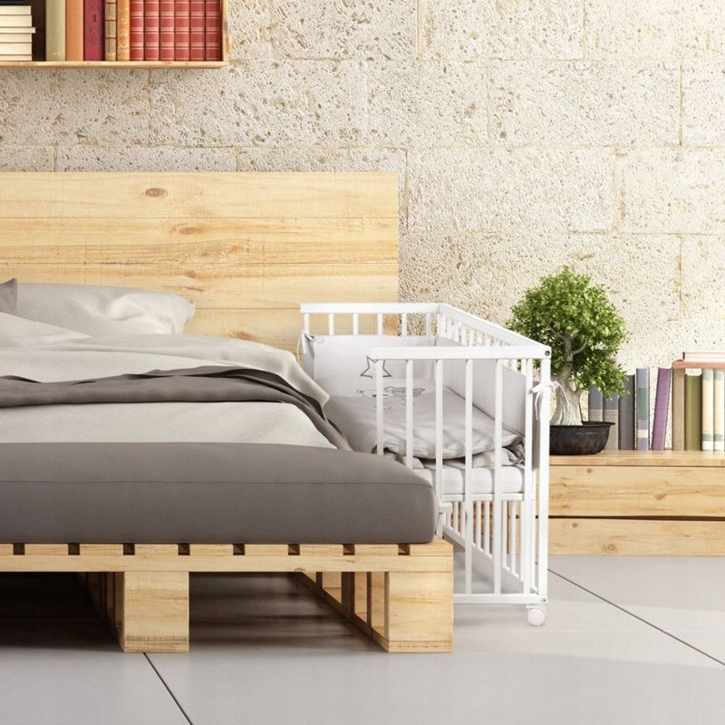 - несколько ступенчатой регулировки высота кровати (регулируется по уровню родительской кровати)