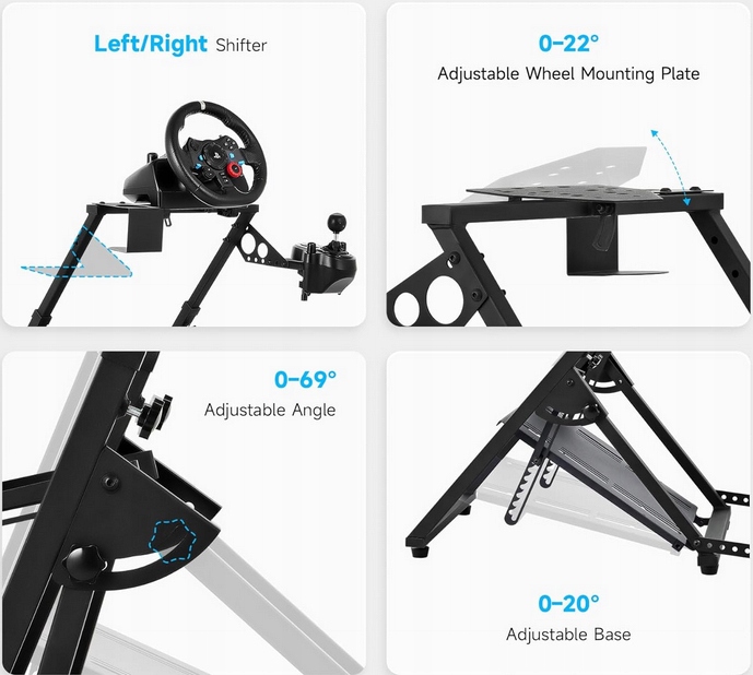 Рулевое колесо и подставка для педалей CO-Z — это прочная регулируемая платформа для гоночных симуляторов, которая превращает рулевое колесо и педали в эргономичную игровую подставку. Если вы играете в гонки на консоли или компьютере, эта подставка обеспечивает устойчивое и удобное крепление для руля и педалей, устраняя необходимость использования стола или самодельных подставок.