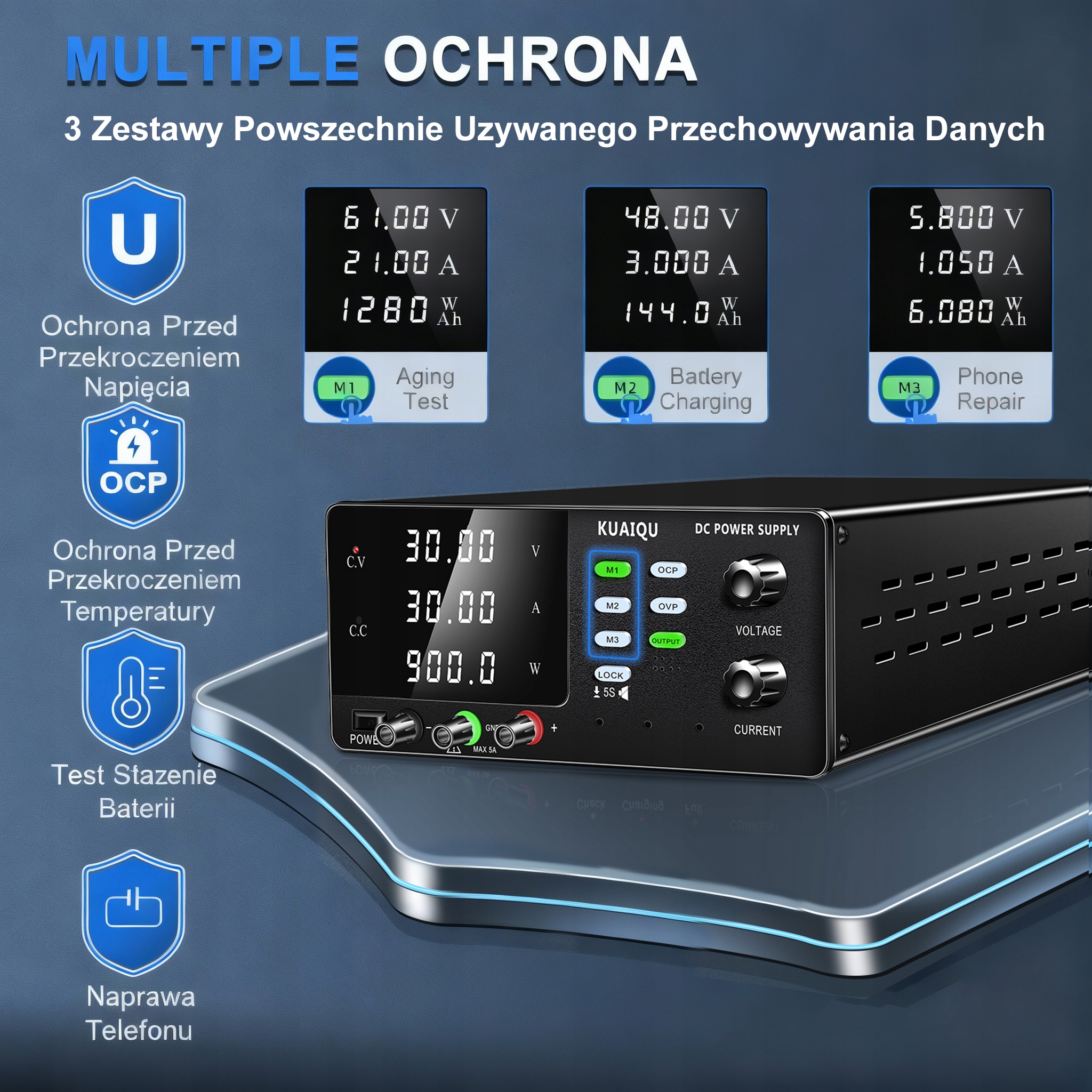 Регулируемый лабораторный источник питания 30В 30А 900Вт с защитой OCP/OVP KUAIQU