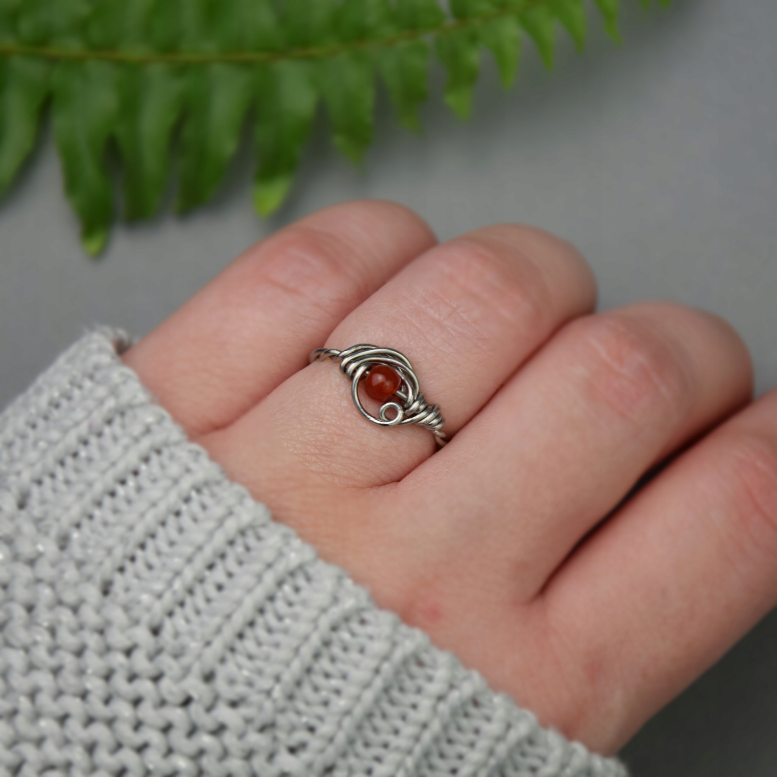 Кольцо ручной работы с сердоликом. Изготовлен полностью из проволоки из хирургической стали в технике проволочной обмотки.
