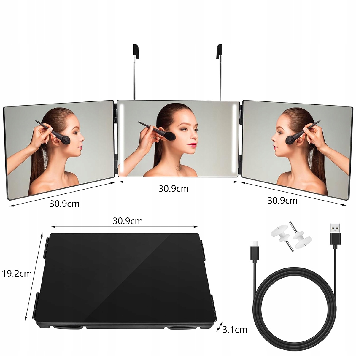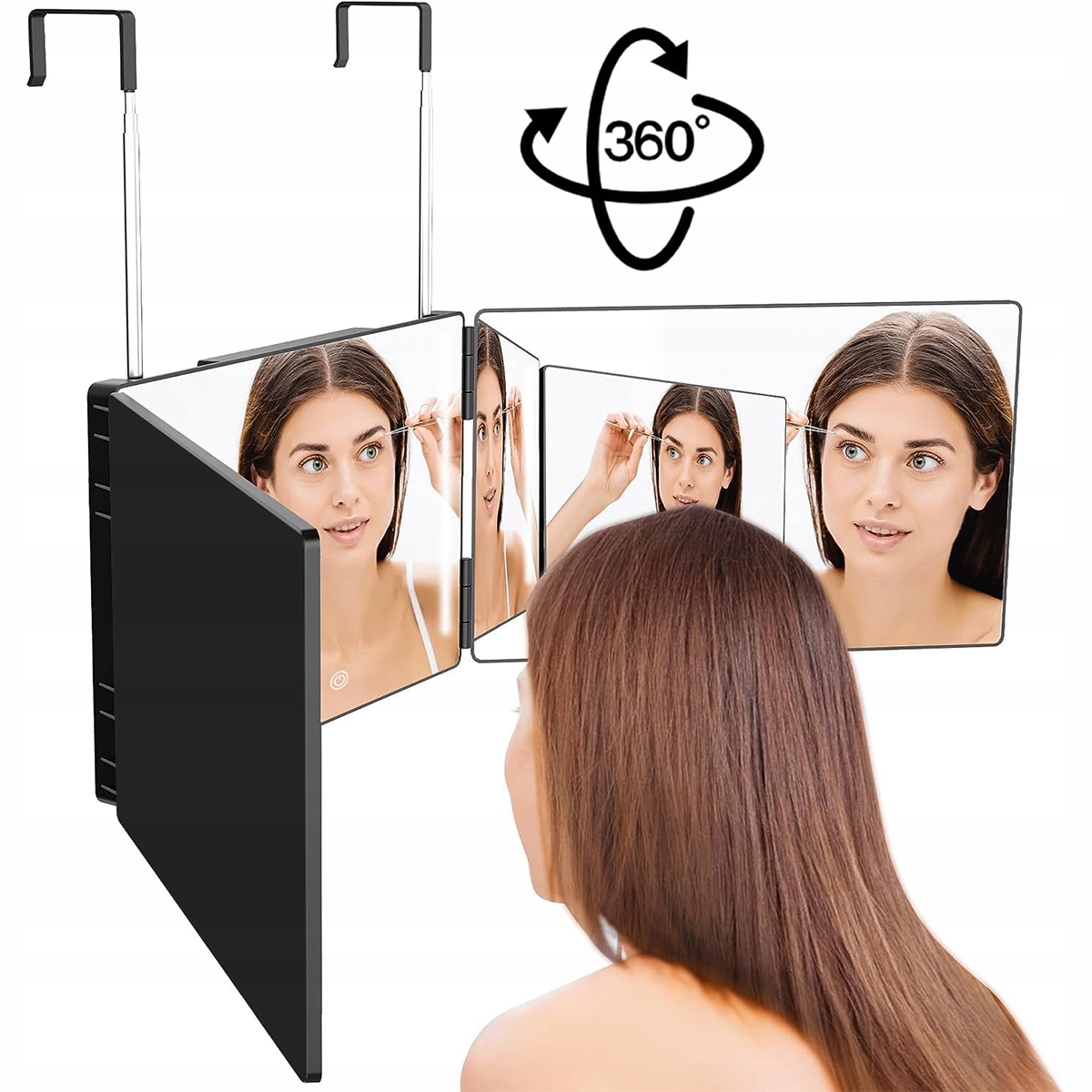 360 градусов зеркало - Складывающее зеркало, трехпартийный набор зеркала, самоочитывающие волосы, зеркало макияжа с регулировкой высоты, зеркало бритья, зеркало макияжа, зеркало для бритья, зеркало парикмахера - со светодиодным