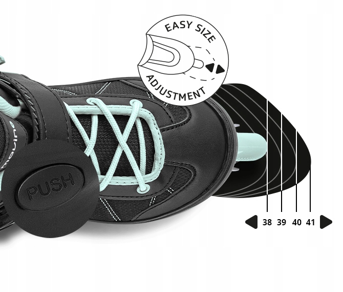 Роликовые коньки Movino Cruzer One оснащены быстрой и надежной системой регулировки размера с помощью одной кнопки. Четырехступенчатый диапазон между размерами 38 и 41 позволяет подогнать обувь на длину стопы от 24 до 26 см.