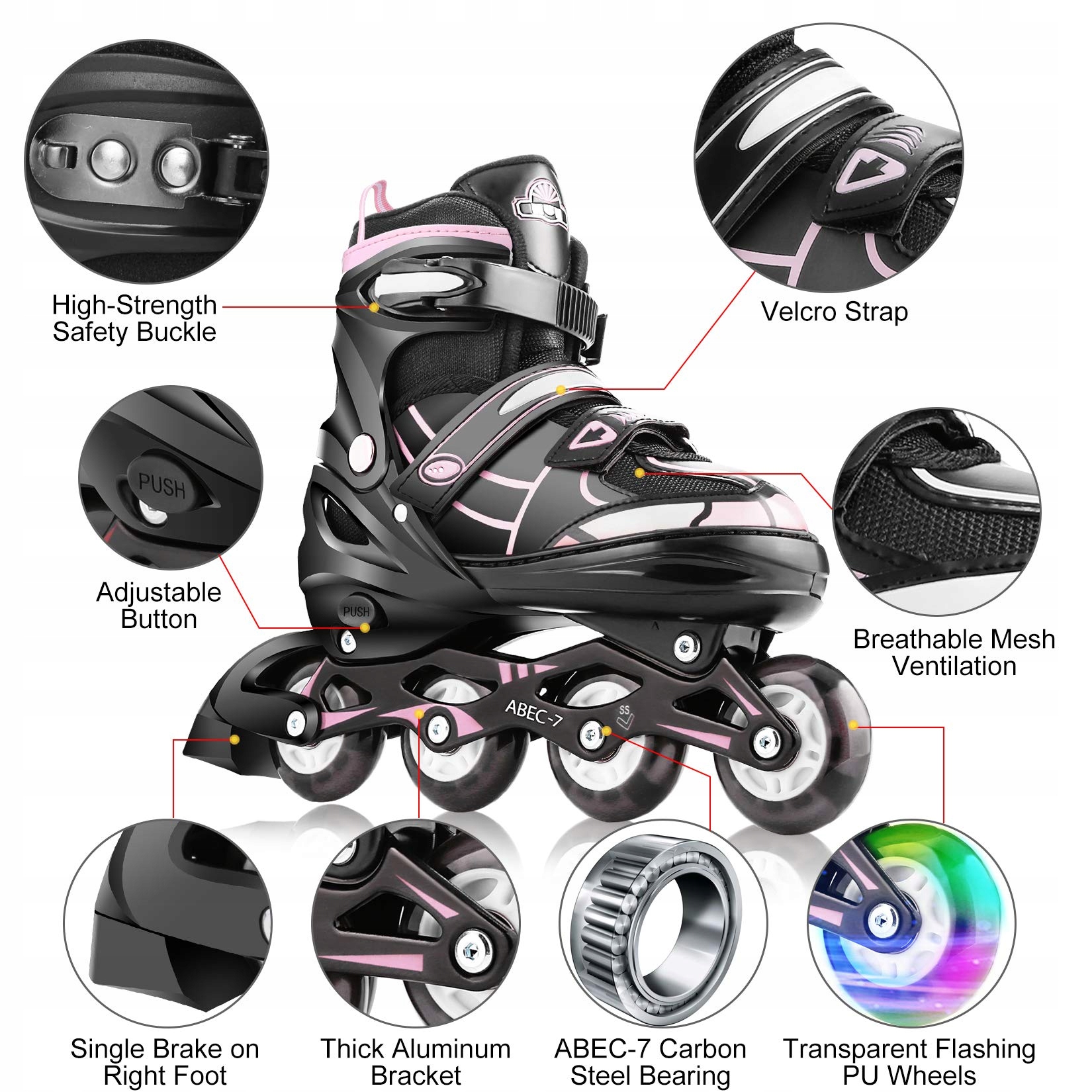 - Кататься на коньках для мальчиков и детей, регулируемые роликовые коньки с 8 колесами из полиуретана (PU), мигающих коньков, для женщин, девочек, детей, мужчин
