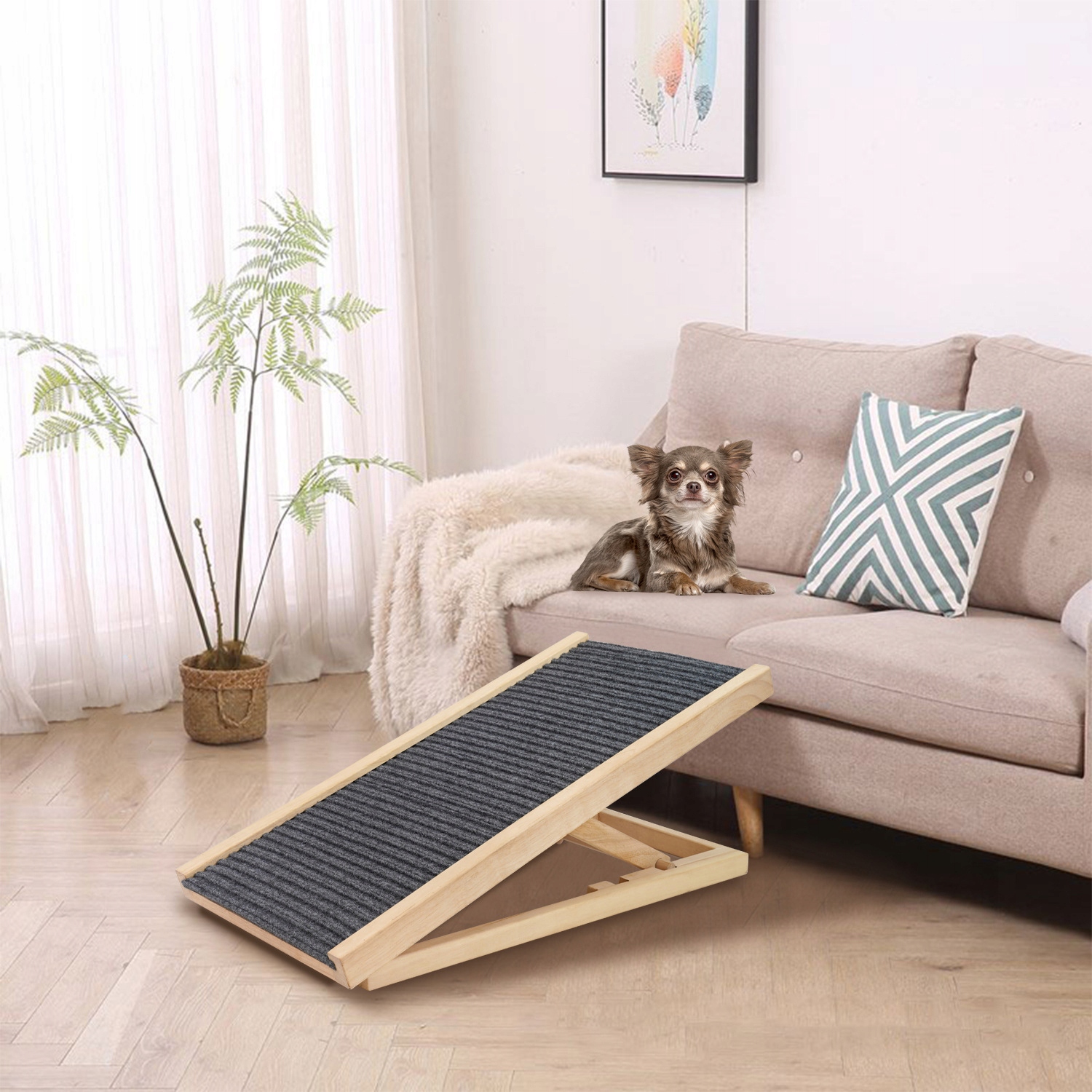 Ландшафт предназначен для собак и кошек практически любой породы. Частые прыжки с дивана или багажника автомобиля могут привести к хроническим заболеваниям суставов и костей вашего питомца. Для здоровья и комфорта ваших питомцев регулируемый пандус предназначен для предотвращения подобных ситуаций.