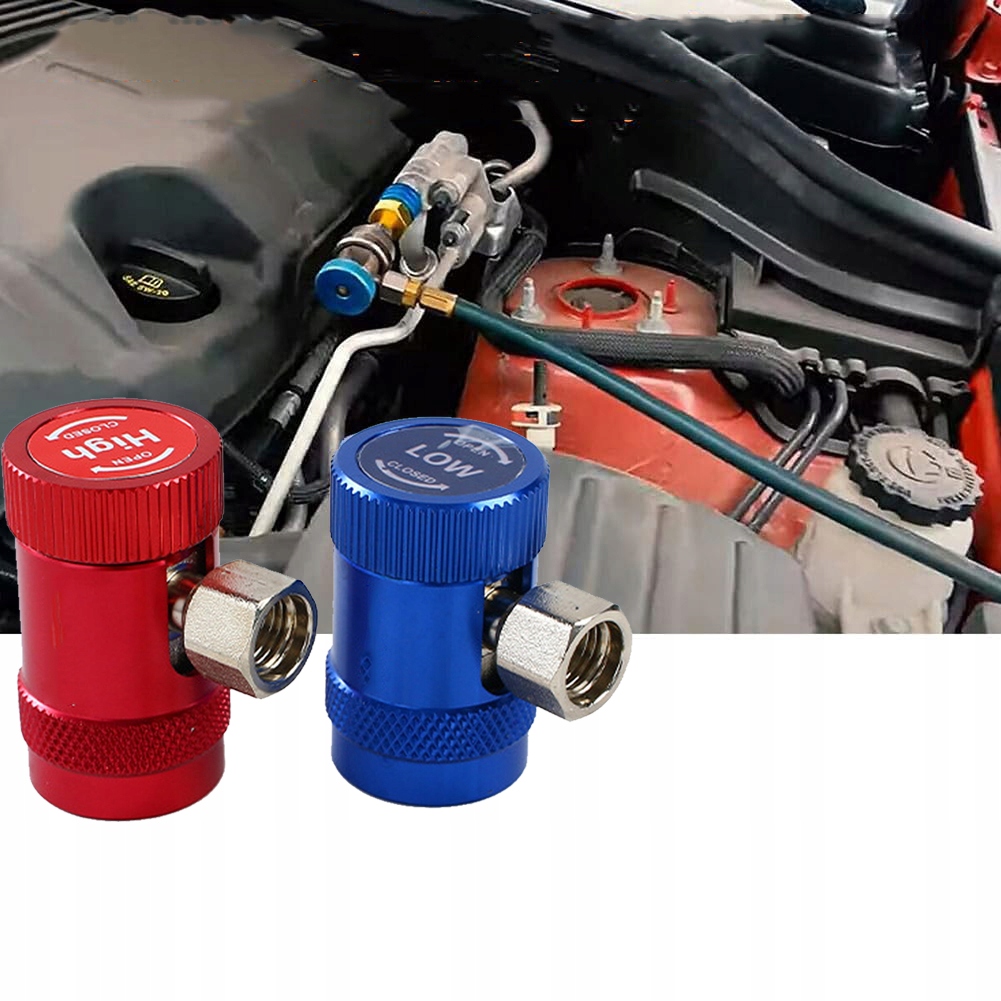 Адаптеры высоких и низких быстрых муфт подходят для хладагентов R1234YF, индикатора коллекционера переменного тока, диагностического контроля, восстановления и опорожнения. Установка, красный для высокого давления, синий для низкого давления, содержит 2 части съемного латунного адаптера.