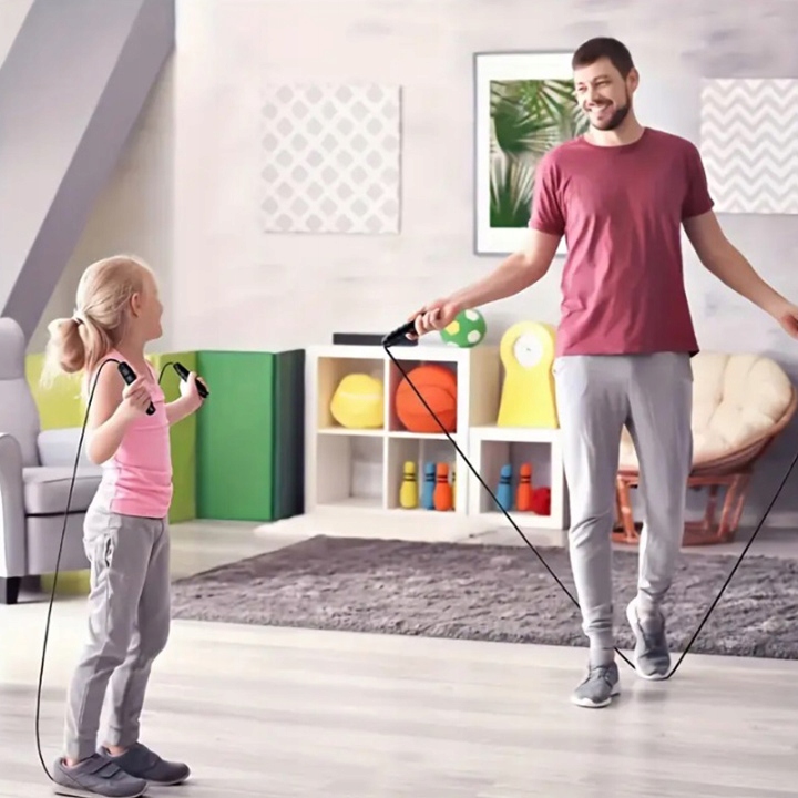 Функциональная и универсальная скакалка длиной 275 см. Его можно отрегулировать и адаптировать как к росту, так и к возрасту. Его могут использовать взрослые и дети.
