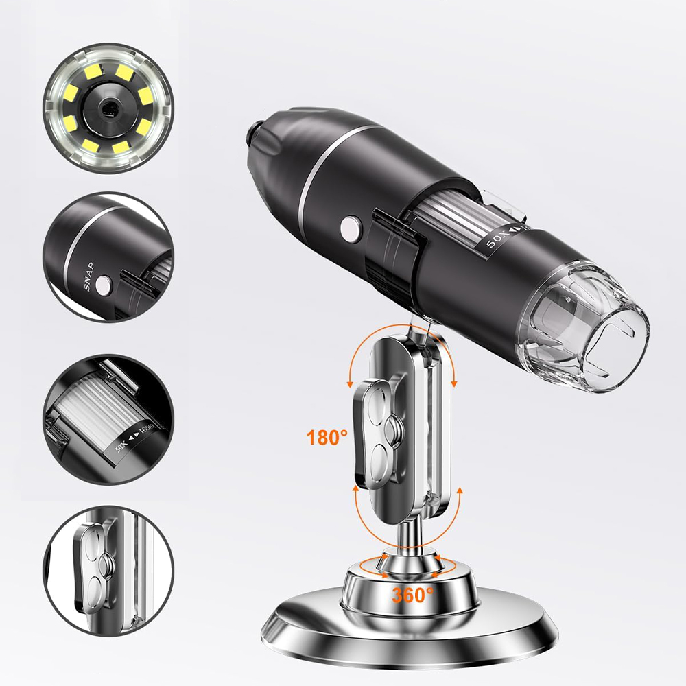 Встроенные 8 регулируемых светодиодных фонарей обеспечивают достаточное освещение даже в темноте. Этот микроскоп идеально подходит для детей, студентов, инженеров, изобретателей и коллекционеров, которые хотят увеличить микроскопические объекты, такие как монеты, кожа, печатные платы, волосы и т. д. Однако он не подходит для серьезных биологов!