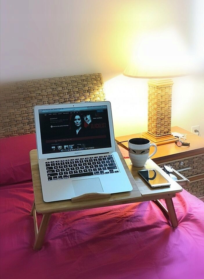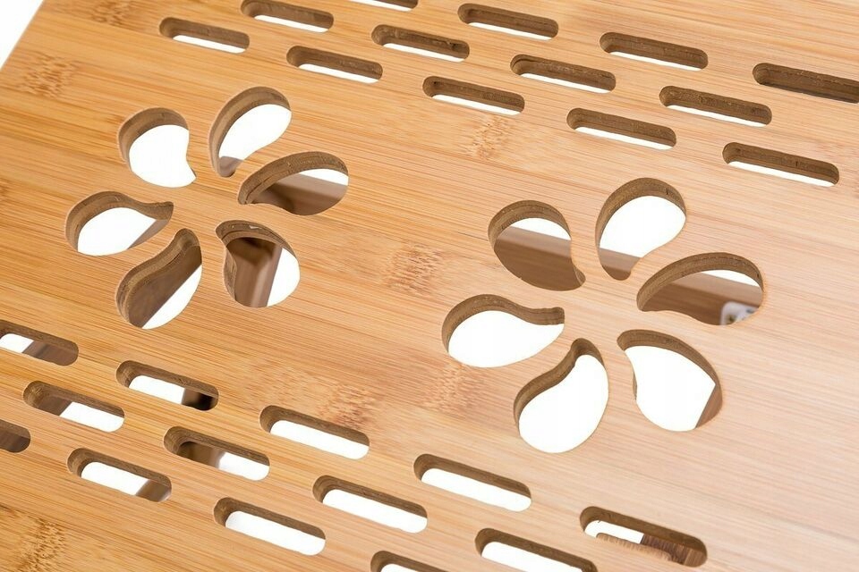 Удобный и практичный столик для ноутбука с вентиляцией – аксессуар, который оценит каждый, кто любит работать за компьютером в удобной , расслабленное положение. К сожалению, использование ноутбука в постели или на диване часто предполагает удержание его на коленях, что не только неудобно, но и может привести к перегреву устройства. Бамбуковый столик для ноутбука будет хорошо работать как в кровати, так и на диване, а также в самолете, поезде и автобусе. Благодаря отверстиям в столешнице вы легко сможете накрыться любимым пледом и поставить компьютер или планшет на вентилируемый столик для ноутбука — он точно не перегреется. Отверстия в столешнице рассеивают тепло, поэтому аккумулятор вашего компьютера прослужит дольше.