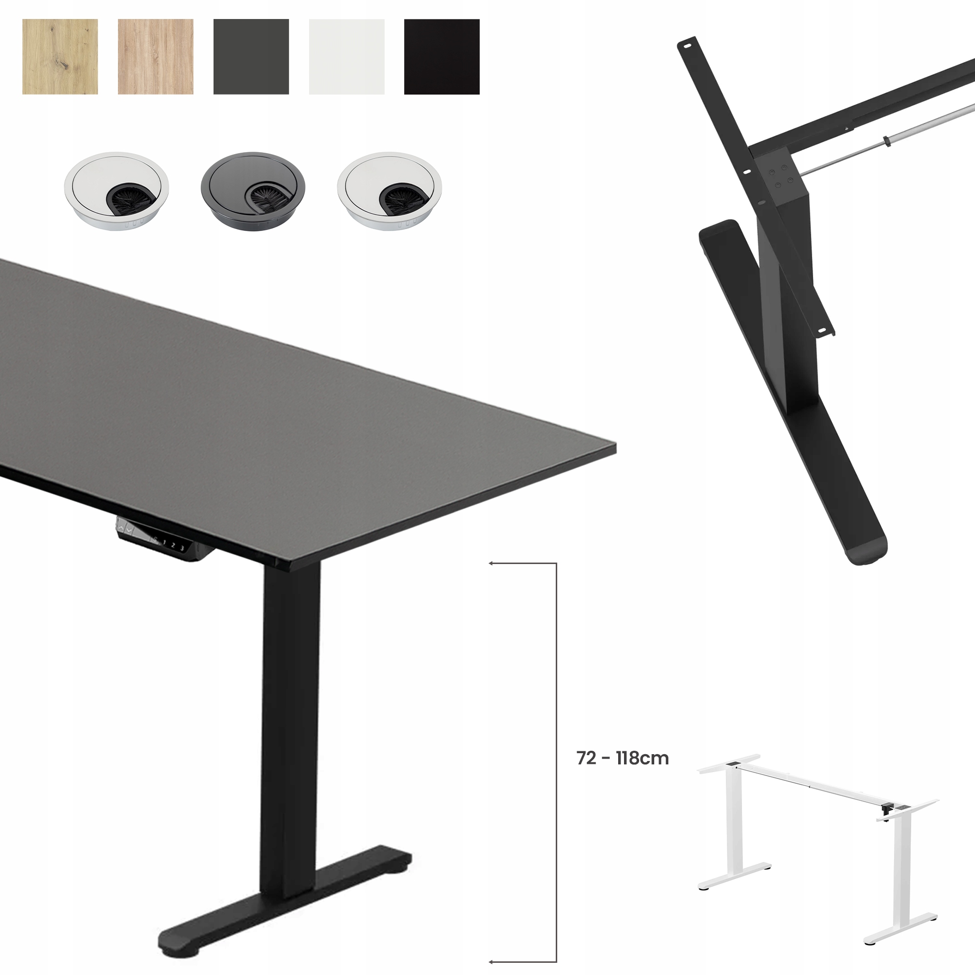 Наше предложение - сочетание высочайшего качества и непревзойденной функциональности. Мы предлагаем столешницу размером 140x70 см, которую по запросу можно обрезать по размеру, чтобы идеально соответствовать вашим потребностям. Прочная металлическая конструкция обеспечивает долговечность и стабильность, а широкий диапазон регулировки высоты и ширины рамы позволяет настроить рабочую станцию в соответствии с вашими предпочтениями. Металлический кабельный ввод, доступный в трех цветах (белый, серый, черный), придает эстетичный вид. Столешница оснащена двумя USB-портами и контроллером с функцией отображения текущей высоты и возможностью сохранения трех любимых конфигураций.