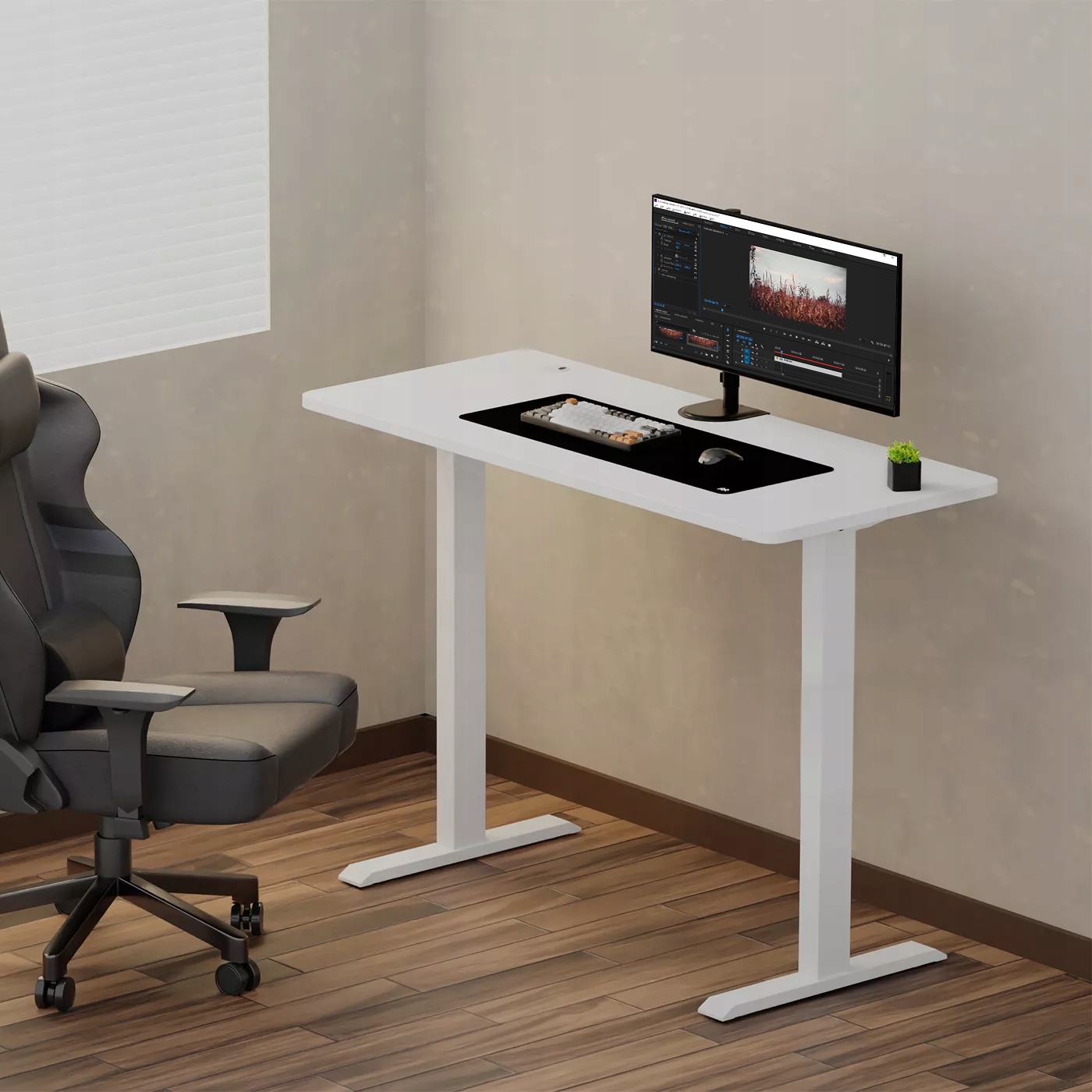 Каркас стола изготовлен из прочной стали и алюминия, что обеспечивает прочность и устойчивость конструкции. Возможность выбора между черным и белым цветом рамки позволяет идеально вписаться в различные офисные помещения. Допустимая нагрузка до 60 кг означает, что на столе можно разместить более тяжелые устройства, такие как мониторы, принтеры или другое офисное оборудование. Одномоторный механизм обеспечивает плавный и бесшумный подъем столешницы со скоростью 20 мм/с, что крайне важно в рабочей среде, где тишина и покой имеют решающее значение.