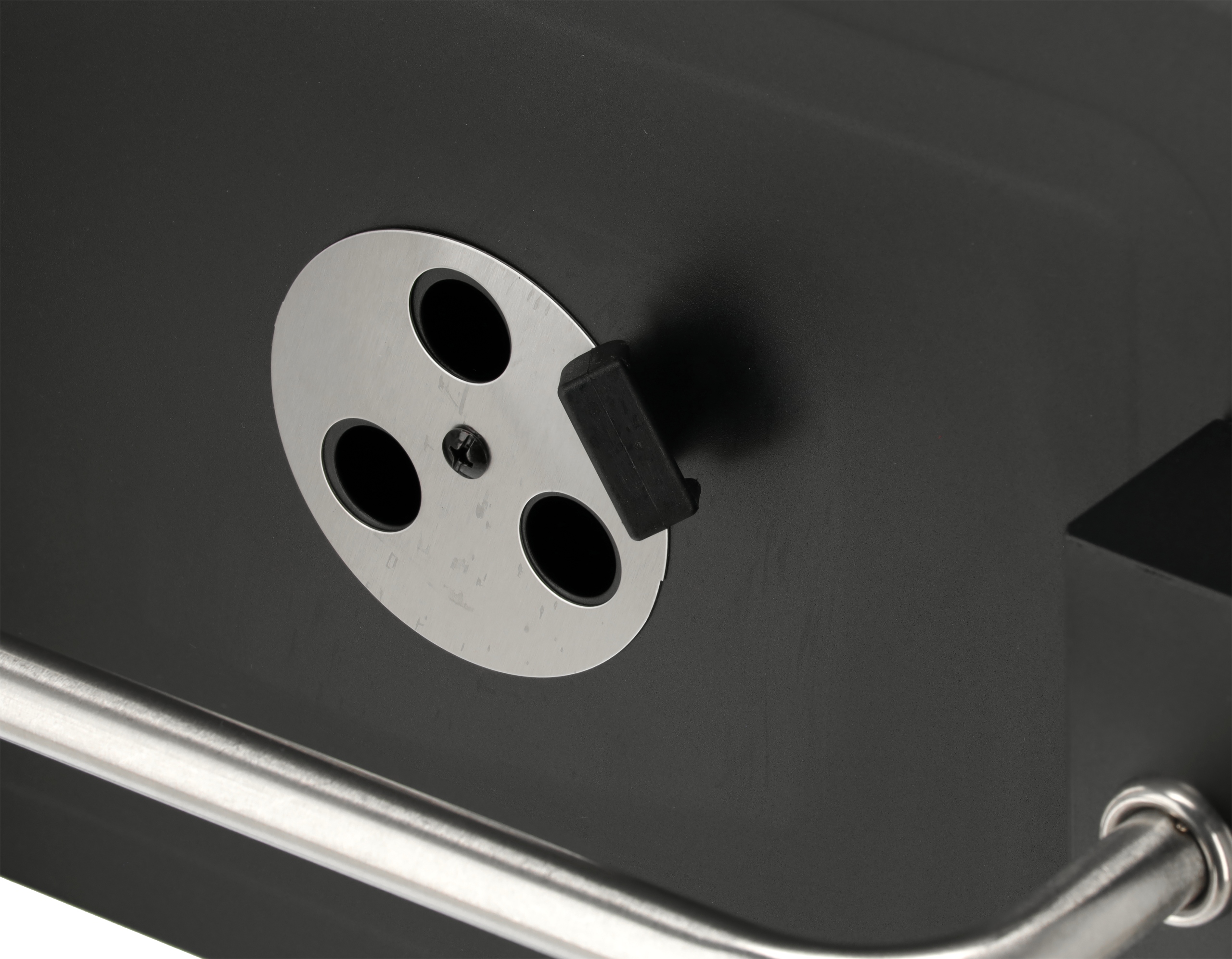 Благодаря апертуре по регулированию циркуляции воздуха и термометра можно контролировать условия внутри гриля на постоянной основе и адаптировать их к компонентам, подверженным различным формам обработки.