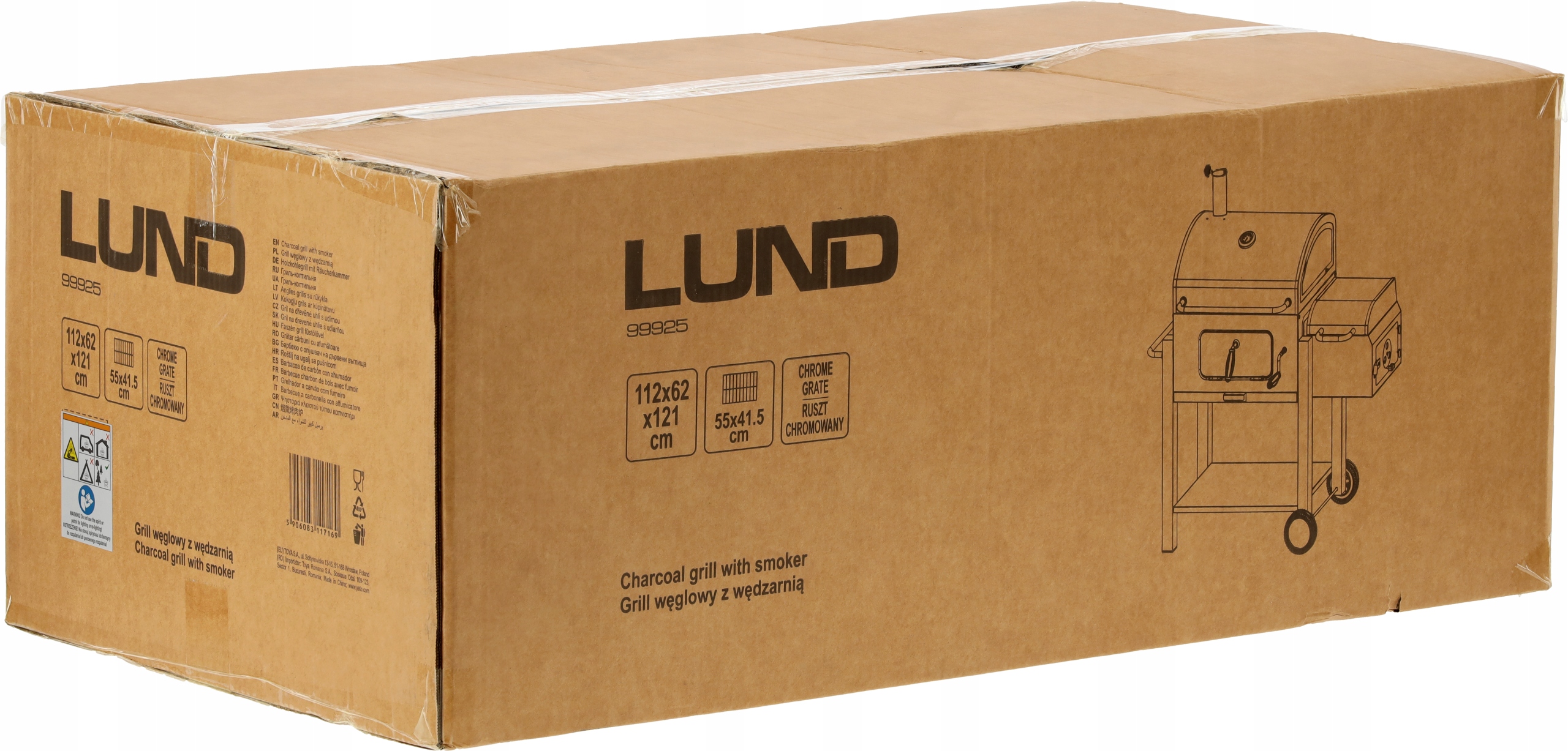Функциональный портативный гриль Lund Carbon с дымкой позволяет готовить различные виды блюд в свежем воздухе.