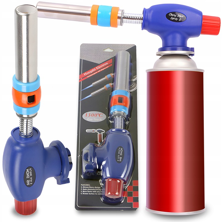 Наша компактная газовая горелка обеспечивает регулируемую максимальную температуру до 1300°C. Наша кухонная горелка идеально подходит для многих применений. Благодаря такой высокой температуре возможности использования неограничены. Эта горелка не только чрезвычайно эффективна, но также мобильна и проста в использовании. Кухня, кемпинг, мастерская — идеальное место для него благодаря своим компактным размерам. Кроме того, горелка имеет регулируемый гибкий наконечник.