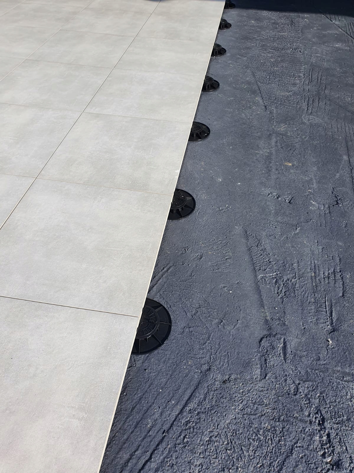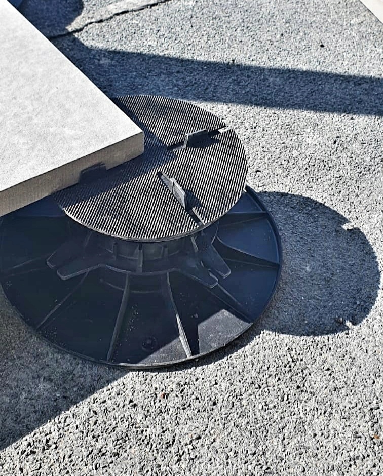 Благодаря регулируемым опорам мы можем выровнять уровень. 4 штифта, расположенные на головке постамента, позволяют удерживать плитки на месте и обеспечивать равномерные промежутки между ними. Такой способ монтажа выполняется без швов и экономит время.