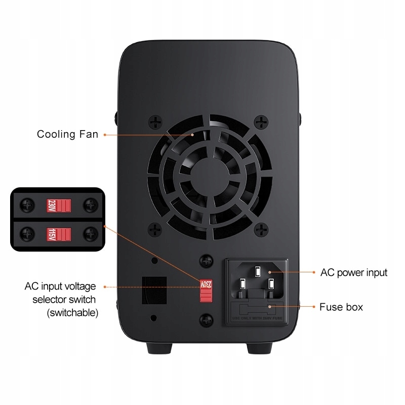 Регулируемый источник питания с 4-значным дисплеем высокого разрешения, который может отображать одновременно три значения: напряжение, ток и мощность. Данные задаются с шагом 0,01 В и 0,001 А. Яркий белый цифровой дисплей облегчает нормальную работу в темноте, а экран можно постоянно оставлять включенным.