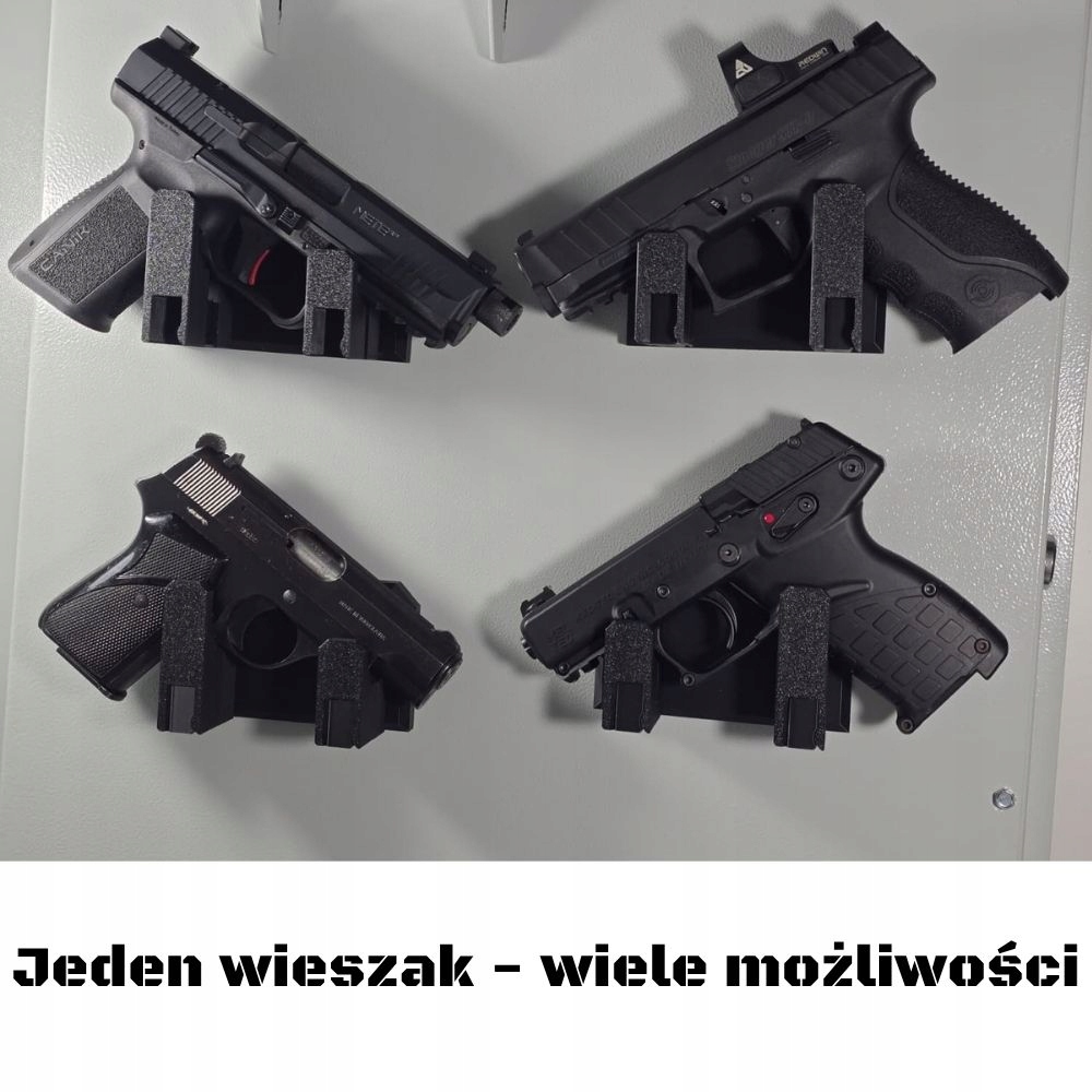 Это наш оригинальный проект, которого всегда не хватало на рынке. Разработанная нами система позволяет подогнать вешалку под ваше оружие, а не наоборот. Не нужно перед покупкой думать, покупать левую или правую подвеску, нет опасений, что она окажется слишком велика или мала для нашего оружия. Вешалка имеет 3 варианта регулировки (перемена местами правой и левой сторон, изменение ширины ручки и отвод ручки от стенки вешалки. Предлагаем вам увидеть возможности нашей вешалки в подготовленной нами короткой видеопрезентации на YouTube: https://youtu.be/onOL1jcynhM