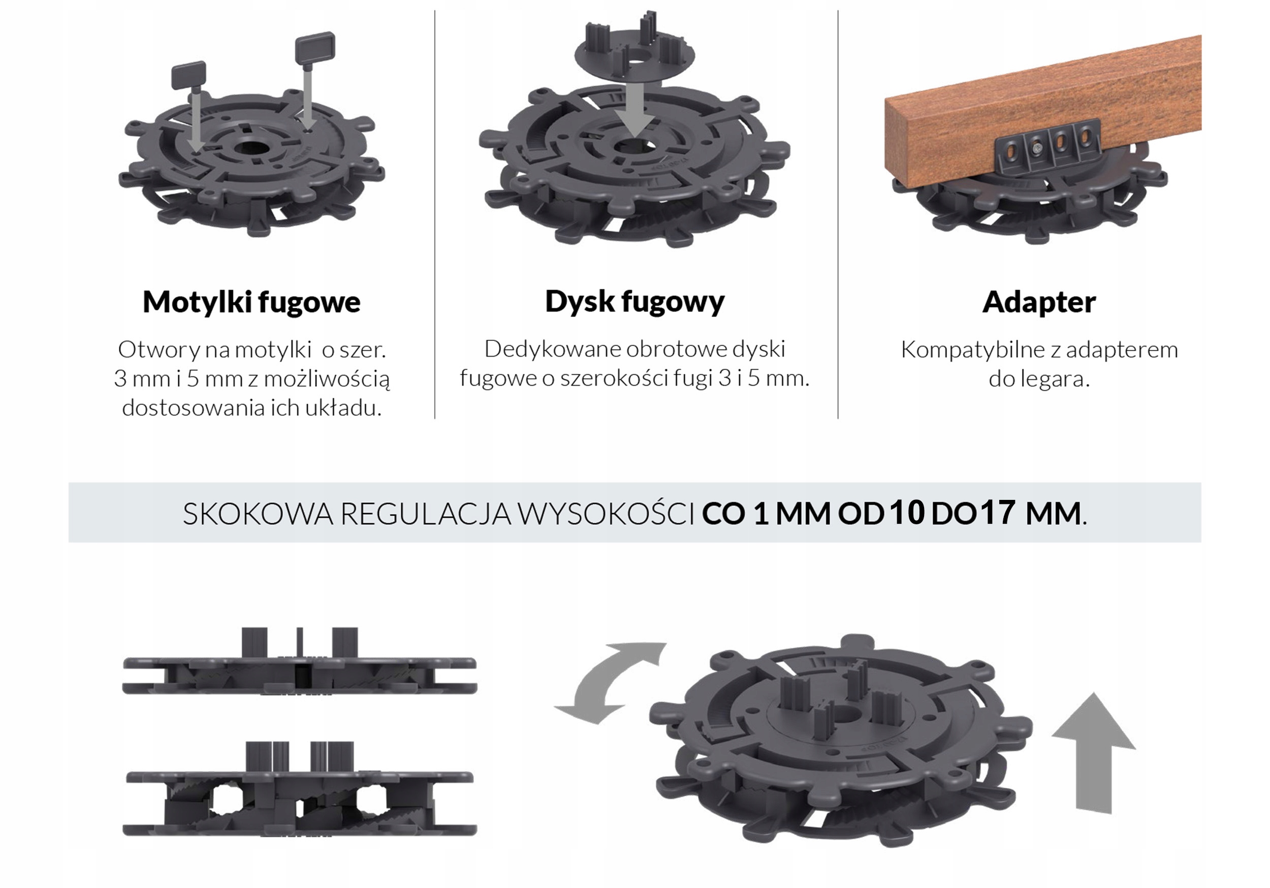 Благодаря новому дизайну этот небольшой кронштейн открывает множество новых возможностей при строительстве террас. Его ступенчатая регулировка осуществляется путем вращения двух половин кронштейна в противоположных направлениях. Из-за этого последующие зубы проскакивают, а брекет поднимается или опускается на 1 мм.