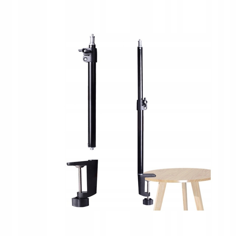 Практичный держатель стола в виде телескопической стрелы, крепящийся к столешнице с помощью тисков. Идеально подходит для установки дополнительного освещения, небольших светодиодных лампочек, небольшого кольцевого светильника, микрофона или держателя для телефона. Высота регулируется от 30 до 50 см. Головка 16 мм с резьбой 1/4 дюйма.