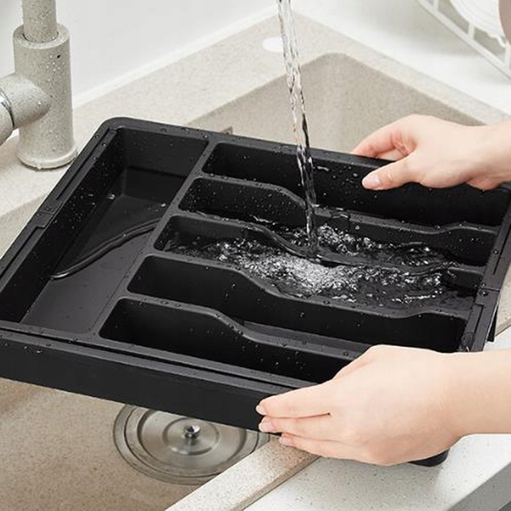 Ящик для столовых приборов очень прост в использовании и имеет уникальную конструкцию края, которая позволяет легко перемещать ручку. Чтобы очистить, просто промойте водой, чтобы удалить пятна. Не стирайте в посудомоечной машине
