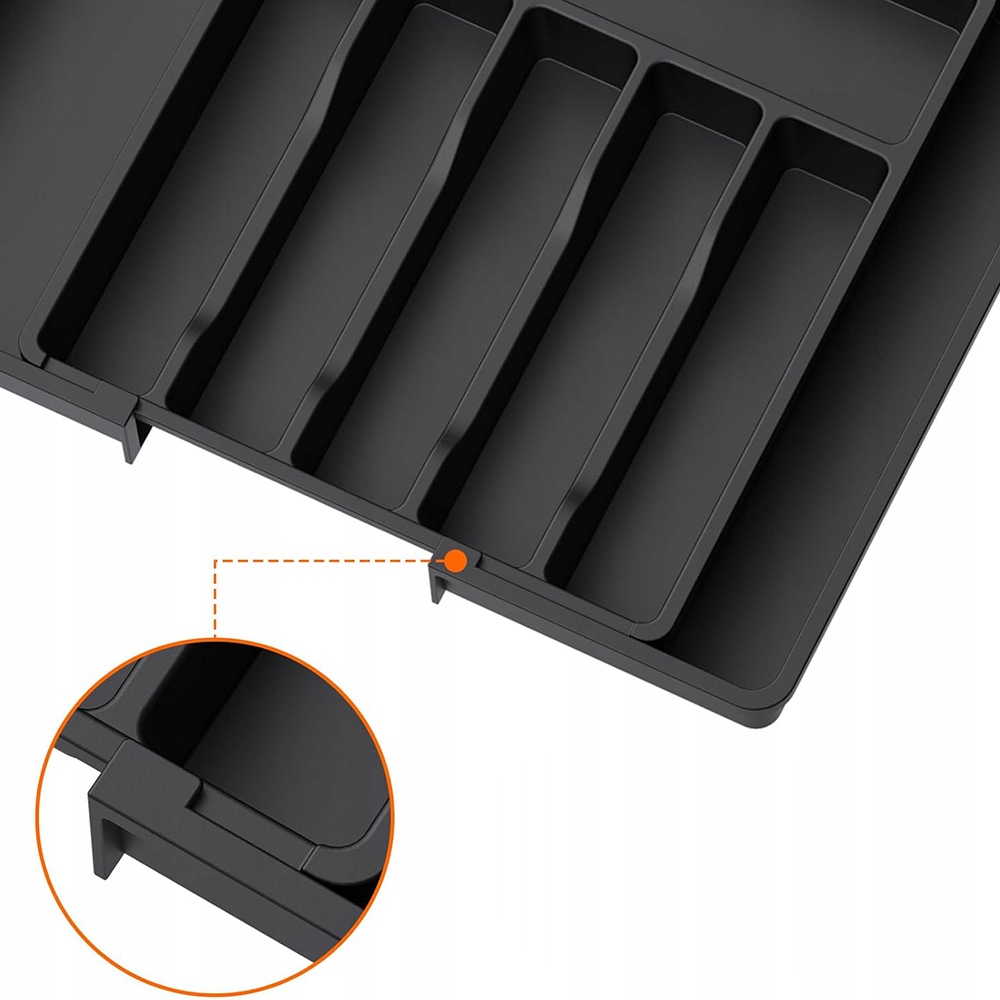 Ящик для столовых приборов имеет регулируемую ширину от 33 до 57 см, совместимый с разными размерами ящиков. Лоток для столовых приборов имеет размеры 57 x 38 x 5 см после развертывания и 33 x 38 x 5 см после складывания. Независимо от того, насколько велик ваш ящик на кухне, этот организатор безопасно вписывается в него