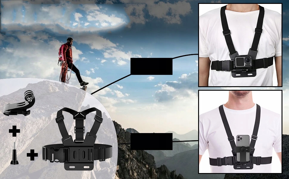 - С помощью этого нагрудного ремня для крепления привязной системы вы можете наслаждаться видом от первого лица.