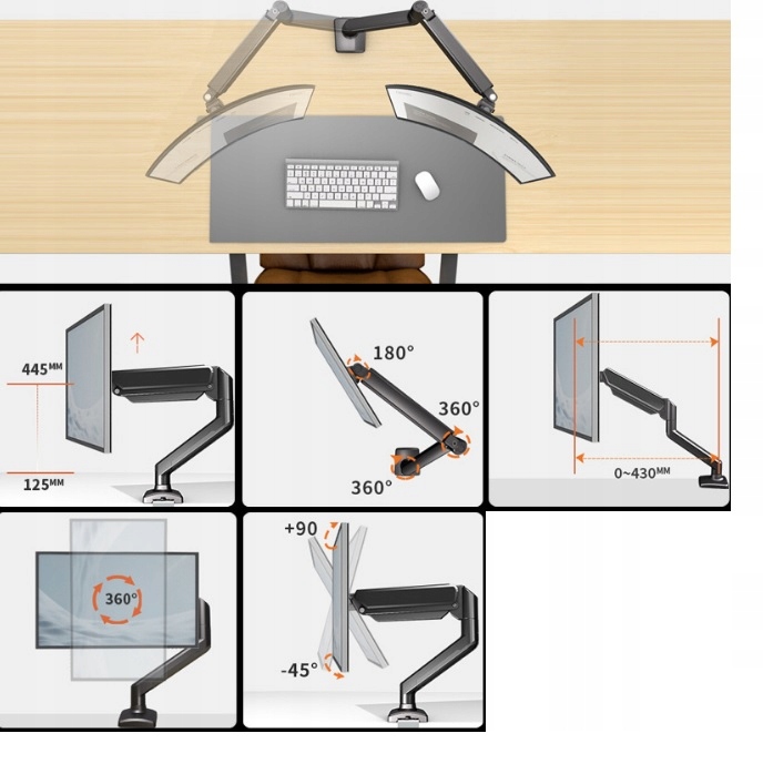 - Управляющая газовая пружина, обеспечивающая плавное контроль над монитором