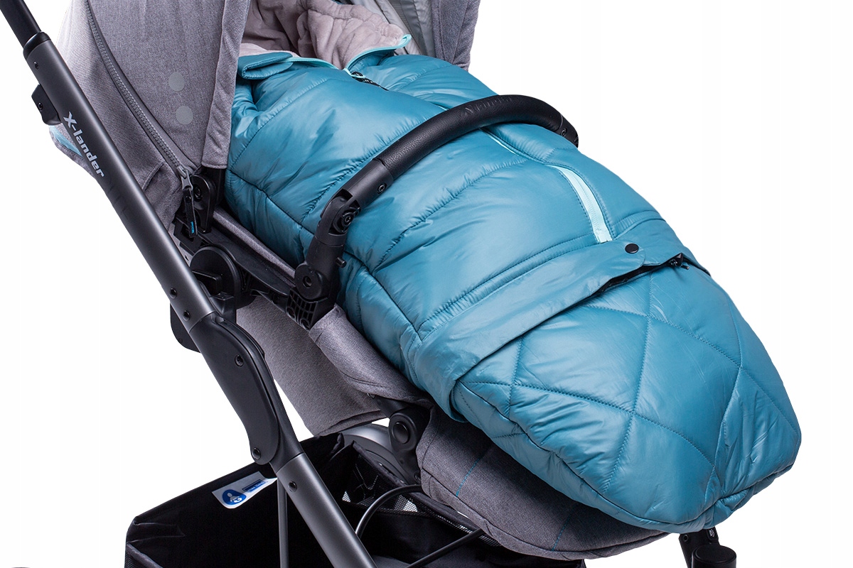Форма спальника позволяет его расстегивать и застегивать по мере необходимости. Молнии можно расстегнуть по всей длине вдоль и поперек спальника. Это облегчает размещение ребенка в коляске.