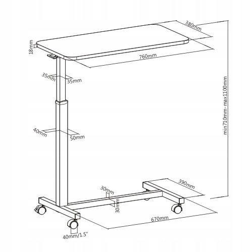Прикроватный столик Spacetronik Buddy оснащен рычагом, благодаря которому регулировка происходит плавно и без усилий. Диапазон регулировки — от 71 см до 110 см.