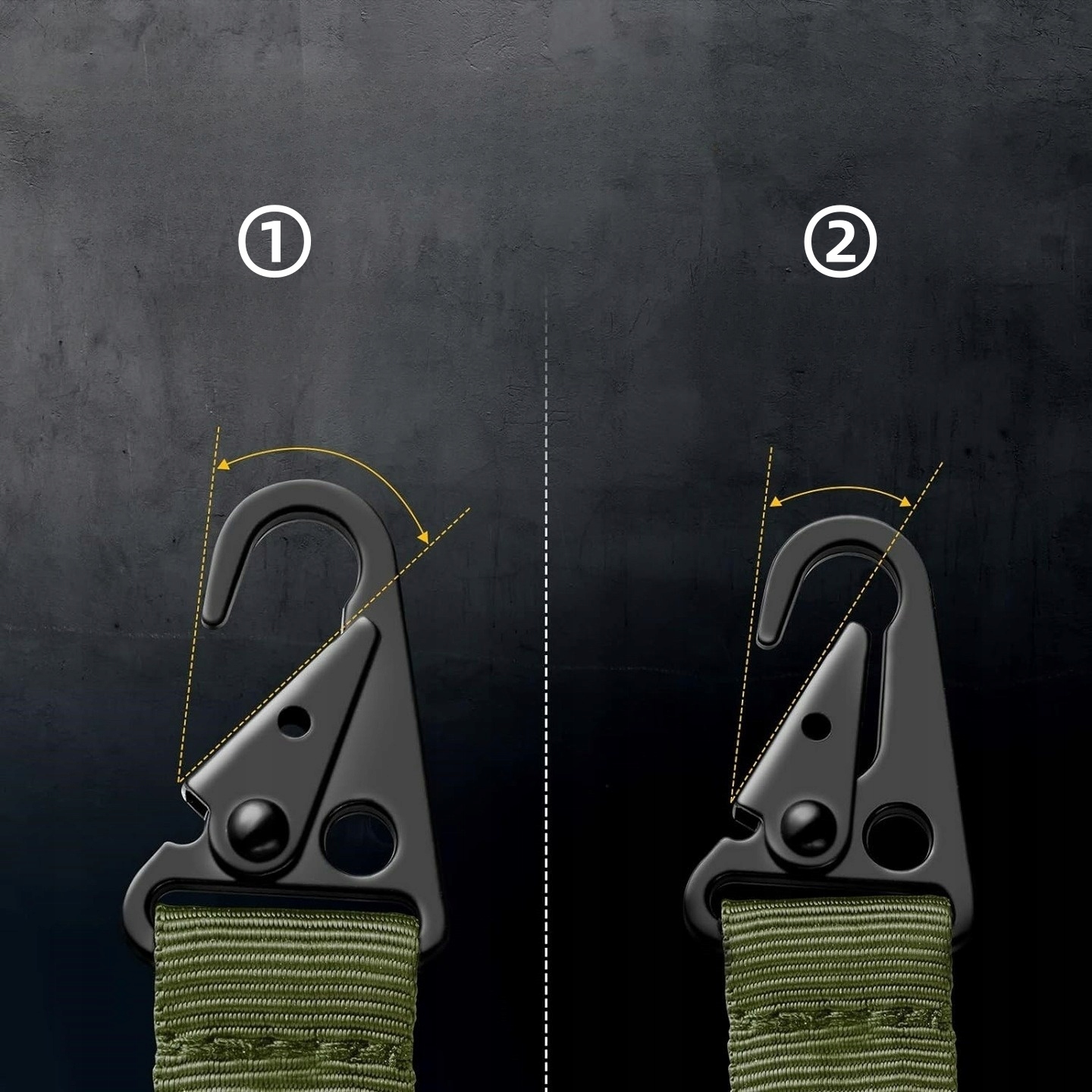 ремешок из карабинера изготовлен из высокоэфроэша нейлона, это защита и не -сластика. Улучшенный ржавый крюк, роторный ремень и основание скорости изготовлены из высококачественного металлического материала, оснащенного антиоксидантными устройствами, что затрудняет портить, рисовать или обвинять их.
