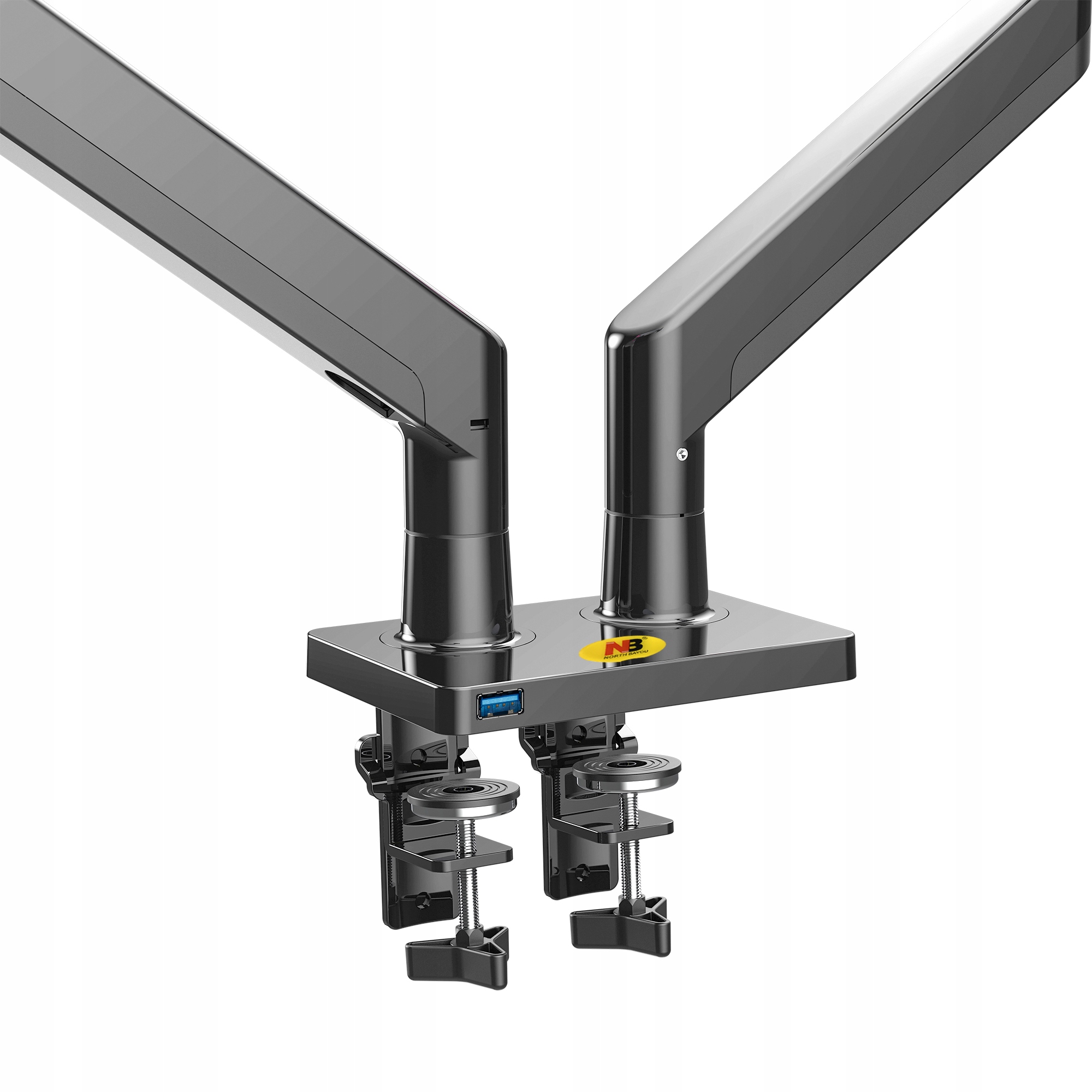 Поворотный настольный держатель для двух ЖК-мониторов со светодиодной подсветкой с полной 3D-регулировкой и плавной регулировкой высоты на газовой пружине.